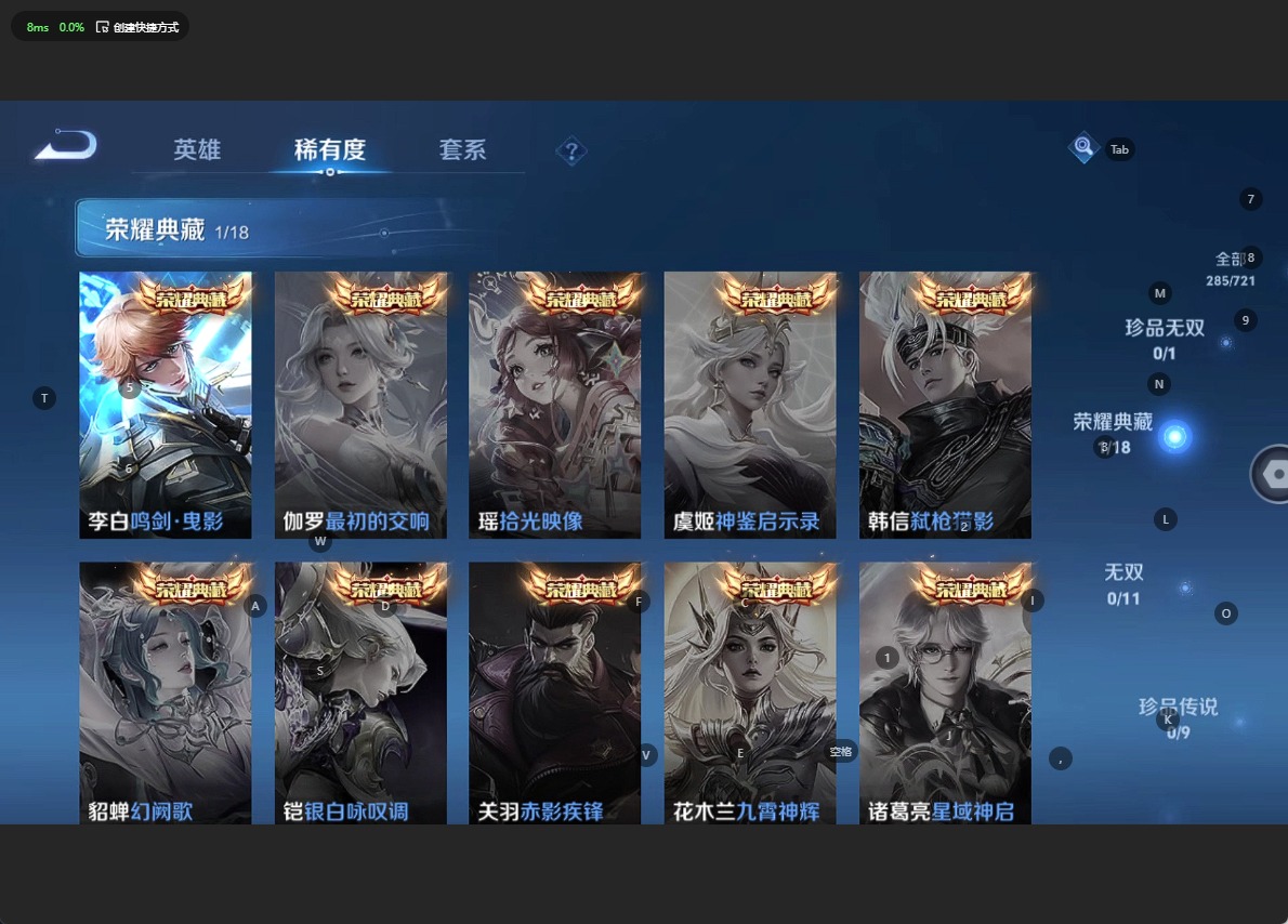 - [11934971]V7 14传说 123英雄 232皮肤 可修改实名 优质装备:黄金狮子座,云鹰飞将(小将军),炽阳神光,地狱之眼,超时空战士-狄仁杰,挚爱之约,无双飞将,山海·炽霜斩(李信年限),燃星之曲,浮生妄,涂山容容 传说皮:幻光神枪 珍宝阁皮:妄想食味 限定皮:愿照·山河定(司空震年限),影龙天霄,五谷丰年,冰锋战神,李小龙,孙行者,天魔缭乱,山海·玄木吟(马可年限) 史诗皮:鸭鸭历险记-刘禅,苍鳞隐世,器灵·浮梦炉,化蝶舞,灵蛊蚀心,龙之律动,藏狐·褐绒,茶境仙,琥珀纪元伽罗,蔬乡物语(鲁班七号),百相守梦-黄忠,织梦人,紫霞仙子,苍穹之光,千年之狐,江河有灵,真我赫兹(镜),蒙恬荣光圣徽,无限星赏官,青蛇,偶像歌手,电玩·爆裂旋风,末日机甲-吕布,猫狗日记-孙策,乱世虎臣,节奏热浪,修罗,摇滚巨星,水果甜心,星夜王子,德古拉伯爵,幽灵船长,鬼剑武藏,舞动绿茵,逐浪之夏,水晶猎龙者,金属风暴,原初追逐者,圣诞狂欢,圣诞恋歌,鹰眼统帅,魅力维加斯,黎明之约,天秀·音浪,无心,未来纪元-赵云