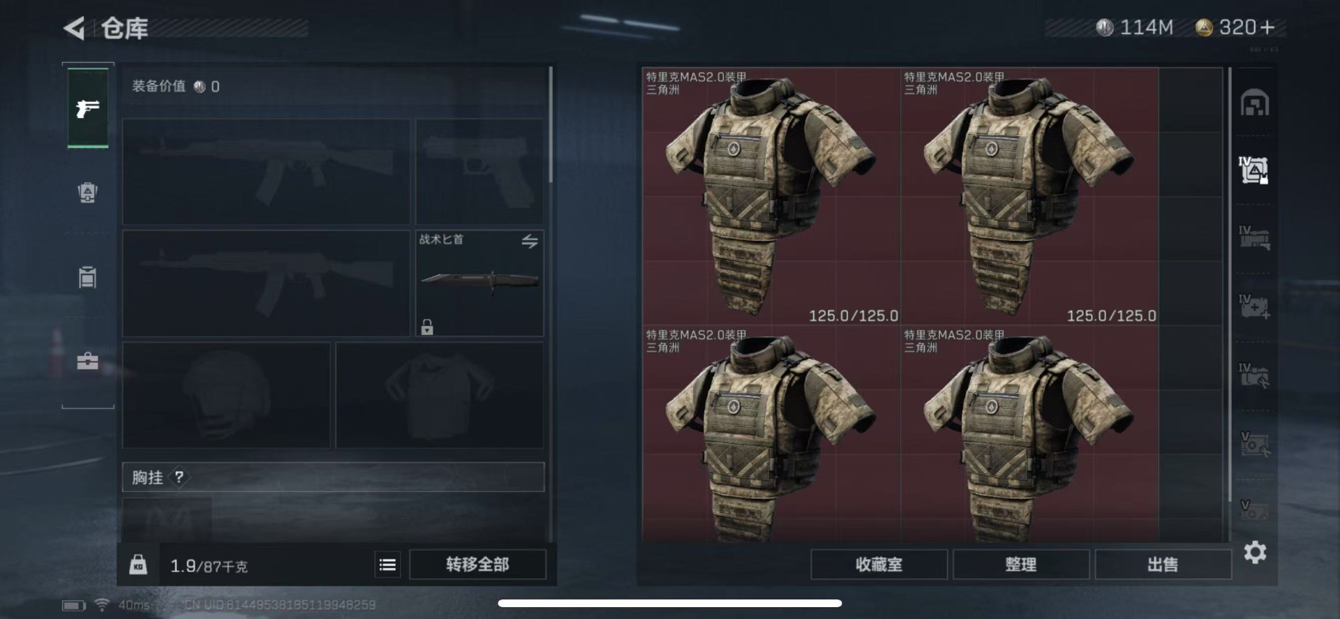 - [12040379]皮肤资产价值40440 【套装】:2022全球冠军赛套装,RGX 11z Pro//3.0套装,耀鳞威龙套装 【英雄】:幻棱,炼狱,维斯,暮蝶,钛狐,壹决,铁臂,捷风,雷兹,幽影,不死鸟,贤者,猎枭,蝰蛇,零,芮娜,奇乐,尚勃勒,霓虹,斯凯,星礈,K/O,海神,盖可,黑梦,钢锁 【近战 武器】:近战武器-2022全球冠军赛 蝴蝶刀,近战武器-RGX 11z Pro//3.0 爪刀,近战武器-威龙之刃,近战武器-鬼丸国纲,近战武器-珍珠棘贝 短剑,近战武器-荒土机兵 热能刀 【狂徒】:狂徒-光明哨兵,狂徒-归零者,狂徒-盖世英雄,狂徒-海洋之星,狂徒-耀鳞威龙,狂徒-离子武器//2.0,狂徒-荒土机兵 【幻影】:幻影-2022全球冠军赛,幻影-光明哨兵//2.0,幻影-西部未来,幻影-侦察力量,幻影-珍珠棘贝,幻影-纳米打击,幻影-西部未来 【戍卫】:戍卫-珍珠棘贝,戍卫-逆冲蛮牛 【獠犬】:獠犬-复古浪潮,獠犬-逆冲蛮牛 【冥驹】:冥驹-起源,冥驹-荒土机兵,冥驹-复古浪潮 【飞将】:飞将-西部未来 【莽侠】:莽侠-RGX 11z Pro//3.0,莽侠-深海水族 【战神】:战神-深海水族 【奥丁】:奥丁-纳米打击 【判官】:判官-毁灭骑士,判官-纳米打击x 【雄鹿】:雄鹿-复古浪潮,雄鹿-逆冲蛮牛 【骇灵】:骇灵-荒土机兵,骇灵-珍珠棘贝 【蜂刺】:蜂刺-深海水族 【标配】:标配-荒土机兵,标配-钢铁意志,标配-决意,标配-艺高胆大 【VCT手枪】:标配-VCT25 x TH 【正义】:正义-RGX 11z Pro//3.0,正义-超限闪存,正义-沙尘幻旅,正义-复古浪潮,正义-纳米打击,正义-游戏结束 【鬼魅】:鬼魅-盖世英雄,鬼魅-耀鳞威龙,鬼魅-流星兵团,鬼魅-诡秘蛇影,鬼魅-光导纤维,鬼魅-星云暗涌 【狂怒】:狂怒-珍珠棘贝,狂怒-火线狂怒,狂怒-逆冲蛮牛 【短炮】:短炮-弧光异彩,短炮-梦魇恶魔,短炮-深海水族 【卡面】:终章:激斗汉堡 卡面,进入射程 卡面,分崩离析 卡面,纳米打击 卡面,抑制技术 卡面,激斗汉堡 卡面,瓦娃脸雪糕 P2 卡面,从黄昏到黎明 卡面,荒土机兵 卡面,银弹猎手 卡面,逆冲蛮牛 卡面,《双城之战》拥抱 卡面,精灵大战 卡面,欢迎来到底城 卡面,南瓜盛典 卡面,修车达人 卡面,正义的化身 卡面,时间到 卡面,最高舞台 卡面,R