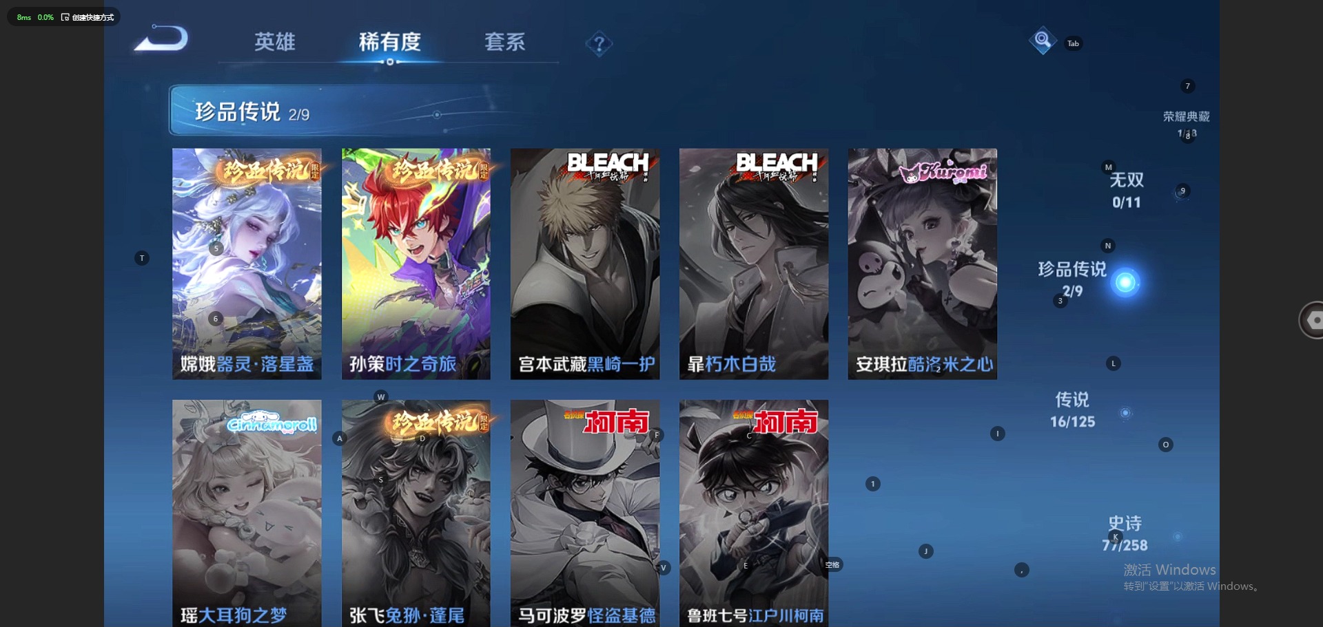 - [11872139]V9 3典藏 2珍品传说 20传说 125英雄 369皮肤 可修改实名 优质装备:鸣剑·曳影,全息碎影(猴子典藏),九霄神辉(木兰典藏),江户川柯南,怪盗基德,冠军飞将,云鹰飞将(小将军),炽阳神光,一念神魔,云霓雀翎,末日机甲-孙尚香(绿蚂蚱),仲夏夜之梦(大飞蛾),李逍遥,时之恋人-刘备(电焊工),超时空战士-狄仁杰,无双飞将,妄想实况,涂山容容 珍宝阁皮:胡桃夹子,女武神 限定皮:逐霄战戟,鸣野蒿,至尊宝,太华(伽罗年限),飞衡(韩信年限),山海·碧波行(瑶年限),瑞麟志(木兰年限),遇见飞天,诗剑行,五谷丰年,青龙志(铠年限),冰锋战神,游园惊梦,逐梦之星,逐梦之音,祈雪灵祝(雪兔子),天狼绘梦者,李小龙,逐梦之影,永曜之星,如梦令-后羿,一生所爱,大圣娶亲,天魔缭乱,青春决赛季,冰霜恋舞曲,美猴王,深海之息(深海大菠萝),山海·玄木吟(马可年限) 史诗皮:灵蛊蚀心,谪仙醉月,龙之律动,怒海争锋,破空之剑,百相守梦-百里守约,星界特工,紫霞仙子,电玩小子(小书包),白龙吟,黄金分割率,特工魅影,千年之狐,永昼,江河有灵,魅语,蒙恬荣光圣徽,无限星赏官,冰冠公主,偶像歌手,晚萤,电玩·爆裂旋风,暗夜猫娘,龙骑士(小龙虾),末日机甲-吕布,猫狗日记-孙策,猫狗日记-大乔,乱世虎臣,节奏热浪,修罗,女仆咖啡,摇滚巨星,水果甜心,绅士熊喵,天才门将,星夜王子,心灵骇客,功夫厨神,德古拉伯爵,暗隐猎兽者,幽灵船长,鬼剑武藏,心灵战警,舞动绿茵,地狱岩魂,诗语江南,纤云弄巧,繁星吟游(呼啦呼啦),缤纷独角兽,乘风破浪,逐浪之夏,水晶猎龙者,曙光守护者,箭羽风息,金属风暴,原初追逐者,圣诞狂欢,圣诞恋歌,鹰眼统帅,王者之锤,暗夜贵公子,魅力维加斯,黎明之约,赏金猎手,无心,未来纪元-赵云