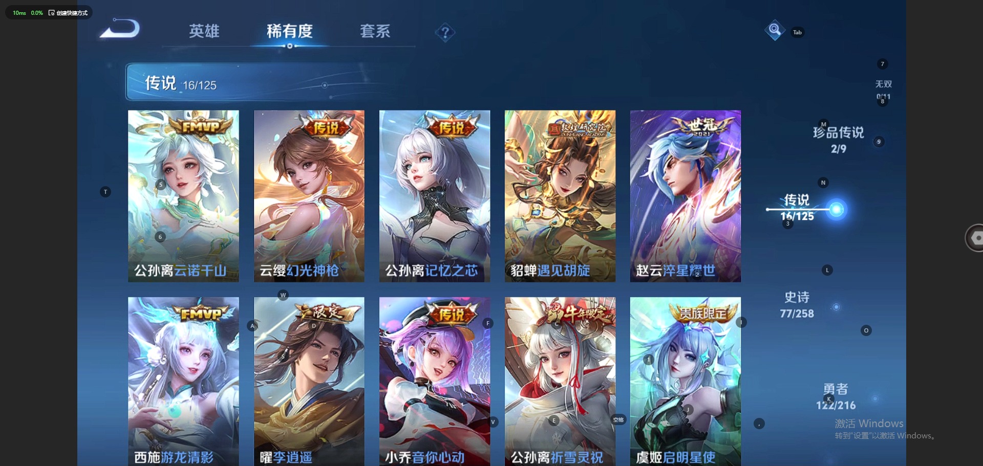 - [11823253]-可二次-V8-123英雄-244皮肤-2星传说-3000多星币能换星传说-15传说-60史诗 天魔缭乱-吕布 齐天大圣-孙悟空 冰锋战神-关羽 街头霸王-韩信