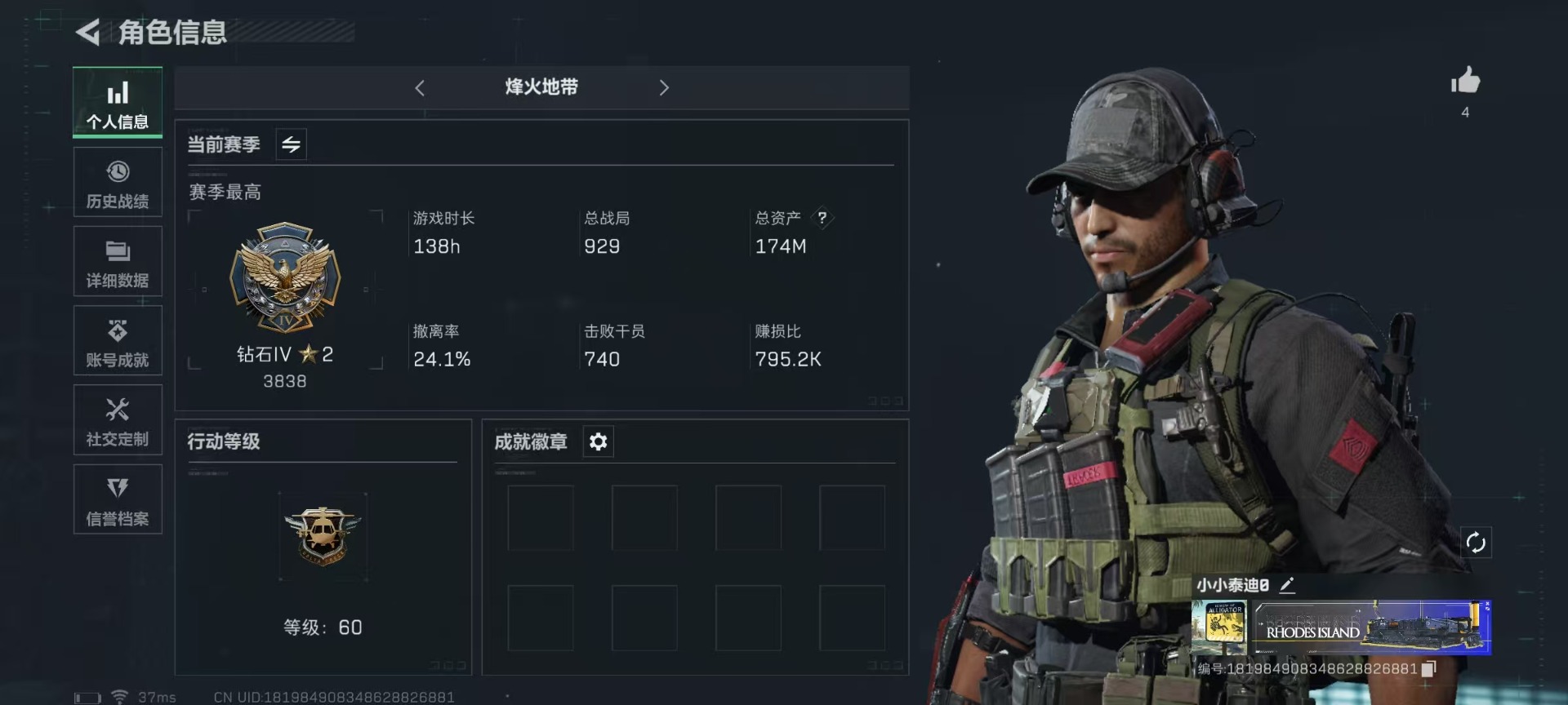 [11680742]总资产:174 6传说枪械 顶级安全箱(3×3)9.15号到期 可二次 可修改实名 优质装备:顶级安全箱(3x3) 烽火地带段位:钻石 全面战场段位:列兵 哈夫币:8.473 传说武器皮肤:M4A1突击步枪-阿米娅,CAR-15突击步枪-阿米娅,AK-12突击步枪-特斯拉线圈,SR-3M紧凑突击步枪-特斯拉线圈,UZI冲锋枪-特斯拉线圈,勇士冲锋枪-能天使-午夜邮差 史诗武器皮肤:M16A4突击步枪-竞赛选手,M250通用机枪-囚徒