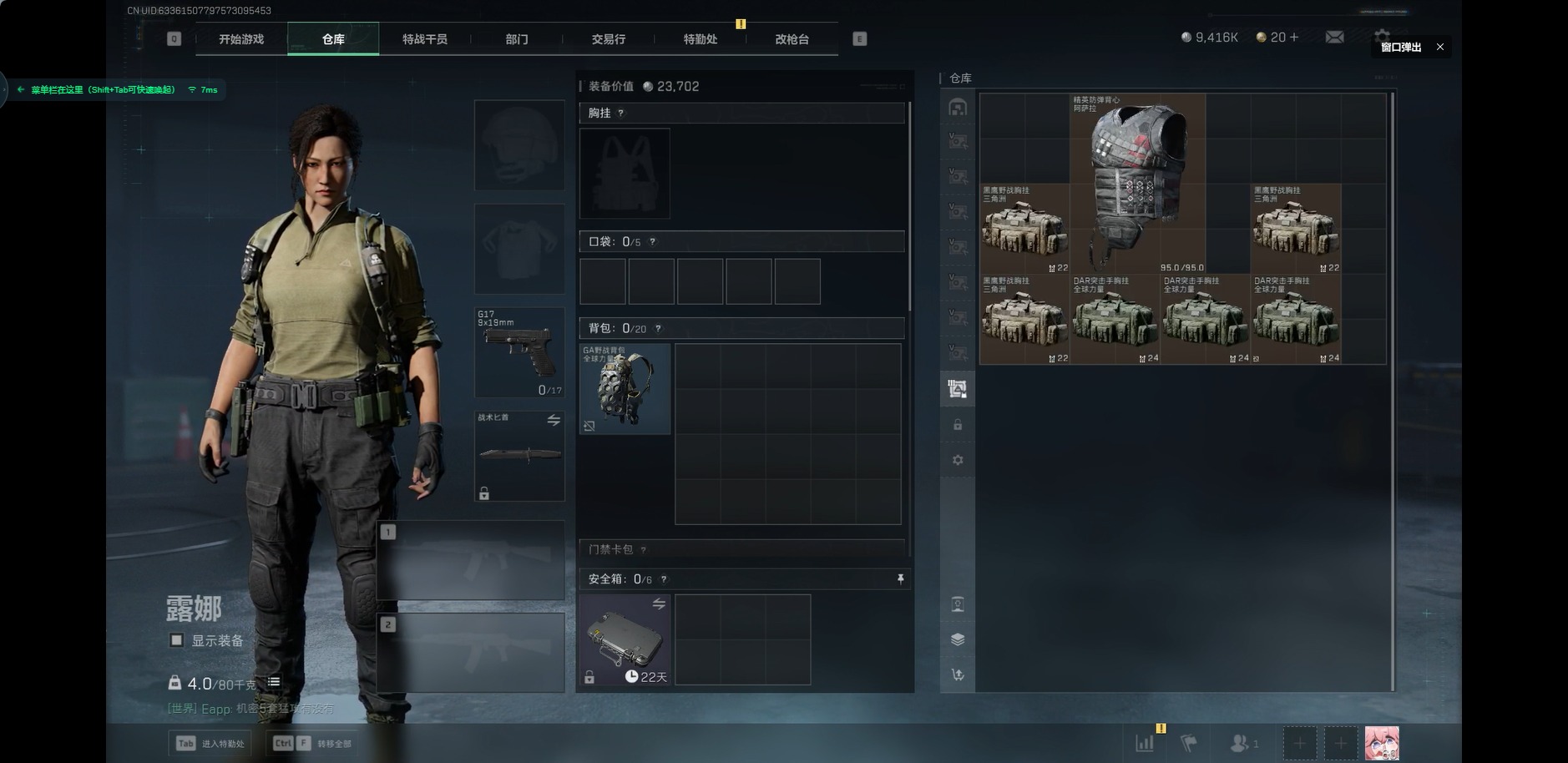 [11680765]总资产:327.6M 1干员外观 12传说枪械 哈夫币:9.416K 高级安全箱(9.17到期) 可二次 可修改实名 烽火地带段位:铂金 全面战场段位:上等兵 传说武器皮肤:SCAR-H战斗步枪-水墨云图,AK-12突击步枪-夜鹰,SMG45冲锋枪-骑士,CAR-15突击步枪-阿米娅,复合弓-黑-天际线,AK-12突击步枪-特斯拉线圈,SR-3M紧凑突击步枪-特斯拉线圈,UZI冲锋枪-特斯拉线圈,勇士冲锋枪-能天使-午夜邮差,725双管霰弹枪-送葬人-无题密令,M7战斗步枪-神秘艺术,CAR-15突击步枪-黑鹰坠落 史诗武器皮肤:AUG突击步枪-蝮蛇,Ash-12战斗步枪-守夜人,SVD狙击步枪-暗夜猎手,M16A4突击步枪-竞赛选手,PKM通用机枪-守夜人,AS Val突击步枪-尖端治疗,M700狙击步枪-守夜人,SG552突击步枪-尖端治疗,SR-25射手步枪-尖端治疗,PKM通用机枪-荒野求生,MP5冲锋枪-深海恐惧,AKM突击步枪-林中猎手,SR-3M紧凑突击步枪-荒野求生,M1014霰弹枪-林中猎手,SV-98狙击步枪-林中猎手,SVD狙击步枪-荒野求生,AS Val突击步枪-典狱官,M250通用机枪-囚徒,SV-98狙击步枪-囚徒,SCAR-H战斗步枪-囚徒,腾龙突击步枪-无垢,MP7冲锋枪-无垢,PSG-1射手步枪-无垢,M14射手步枪-黑鹰坠落,QBZ95-1突击步枪-曙光,沙漠之鹰-曙光,SVD狙击步枪-阿萨拉工艺,S12K霰弹枪-曙光,PKM通用机枪-英雄,M700狙击步枪-竞技风,AUG突击步枪-战术迷彩 干员外观:露娜-黑·天际线