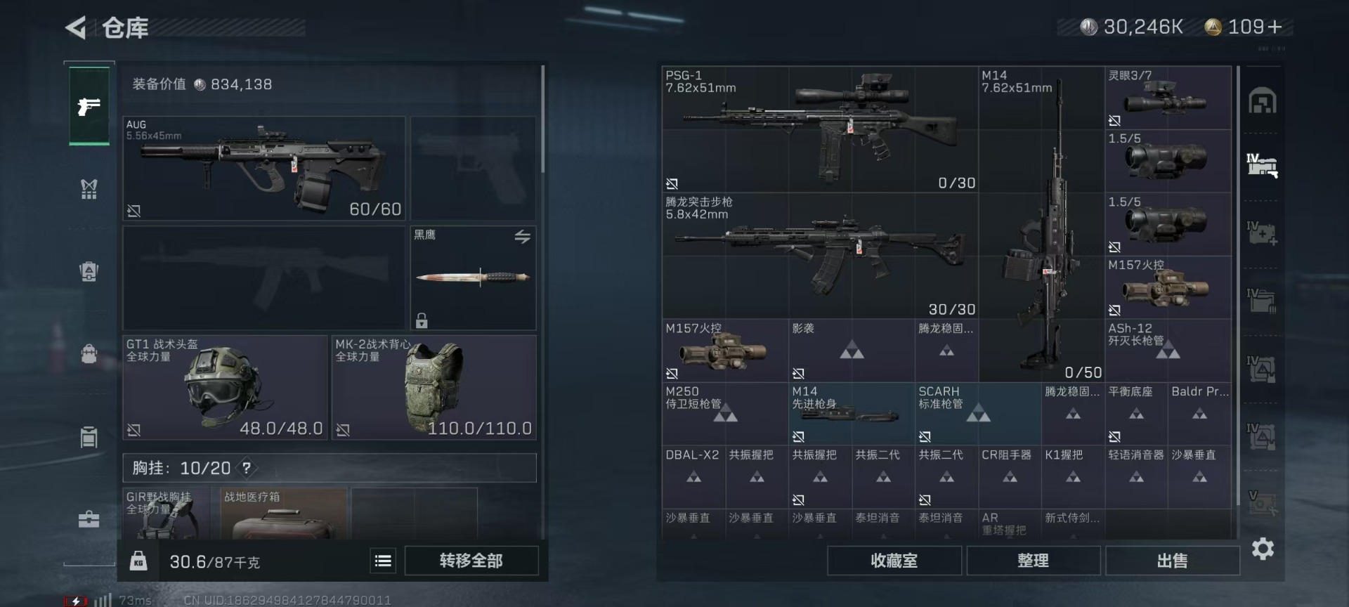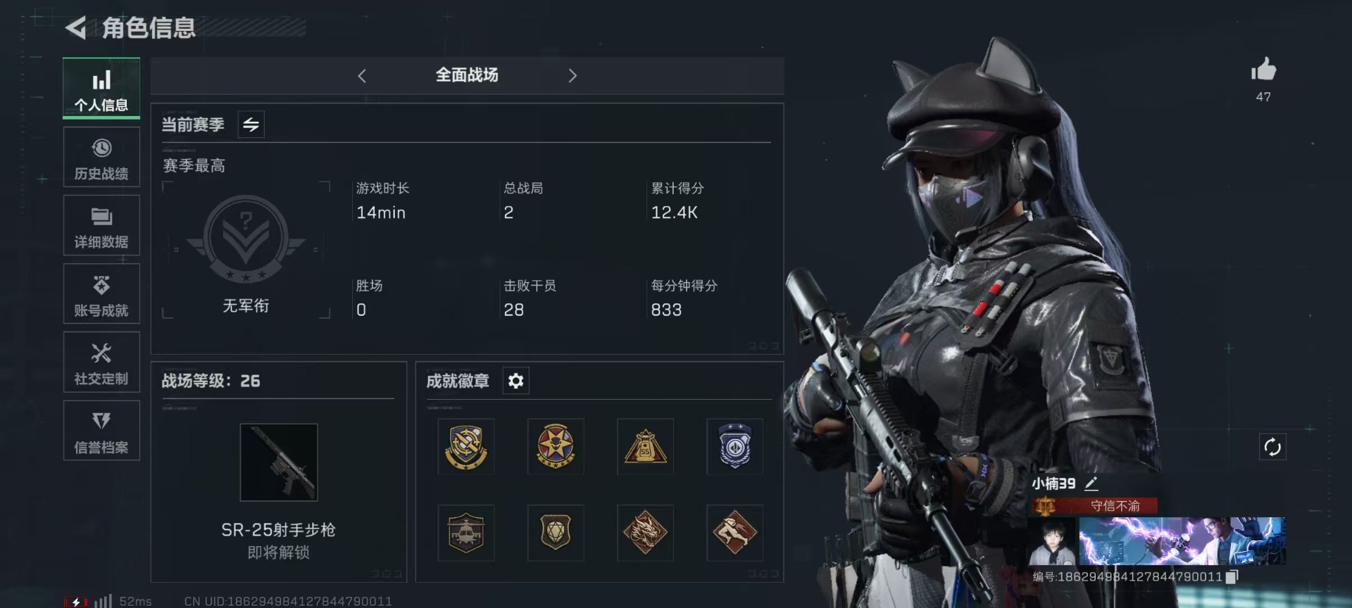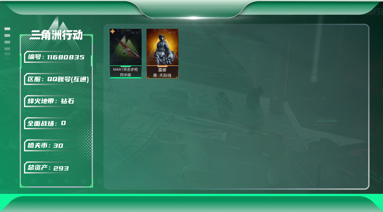 [11680835]总资产:293.7M 1干员外观 1传说枪械 哈夫币:30.246K 可二次 可修改实名 优质装备:顶级安全箱(3x3) 烽火地带段位:钻石 全面战场段位:无段位 传说武器皮肤:M4A1突击步枪-阿米娅 干员外观:露娜-黑·天际线