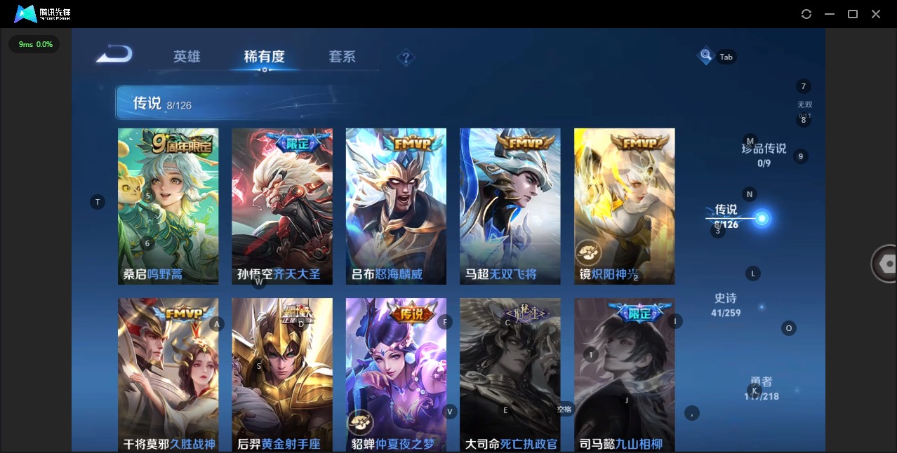 - PX_2080803-69 安卓QQ/最强王者/196皮肤/123英雄/1典藏/0珍品无双/0无双/0珍品传说/11传说/48史诗/8稀有英雄 【1 典藏皮肤】最初的交响 伽罗, 【11 传说皮肤】逐花归海 澜,凤求凰 李白,惊梅引 宫本武藏,山海·炽霜斩 李信,冠军飞将 花木兰,玄雷天君 嬴政,幻光神枪 云缨,愿照·山河定 司空震,愿照·岁时盈 虞姬,愿照·千秋盛 女娲,鸣野蒿 桑启, 【48