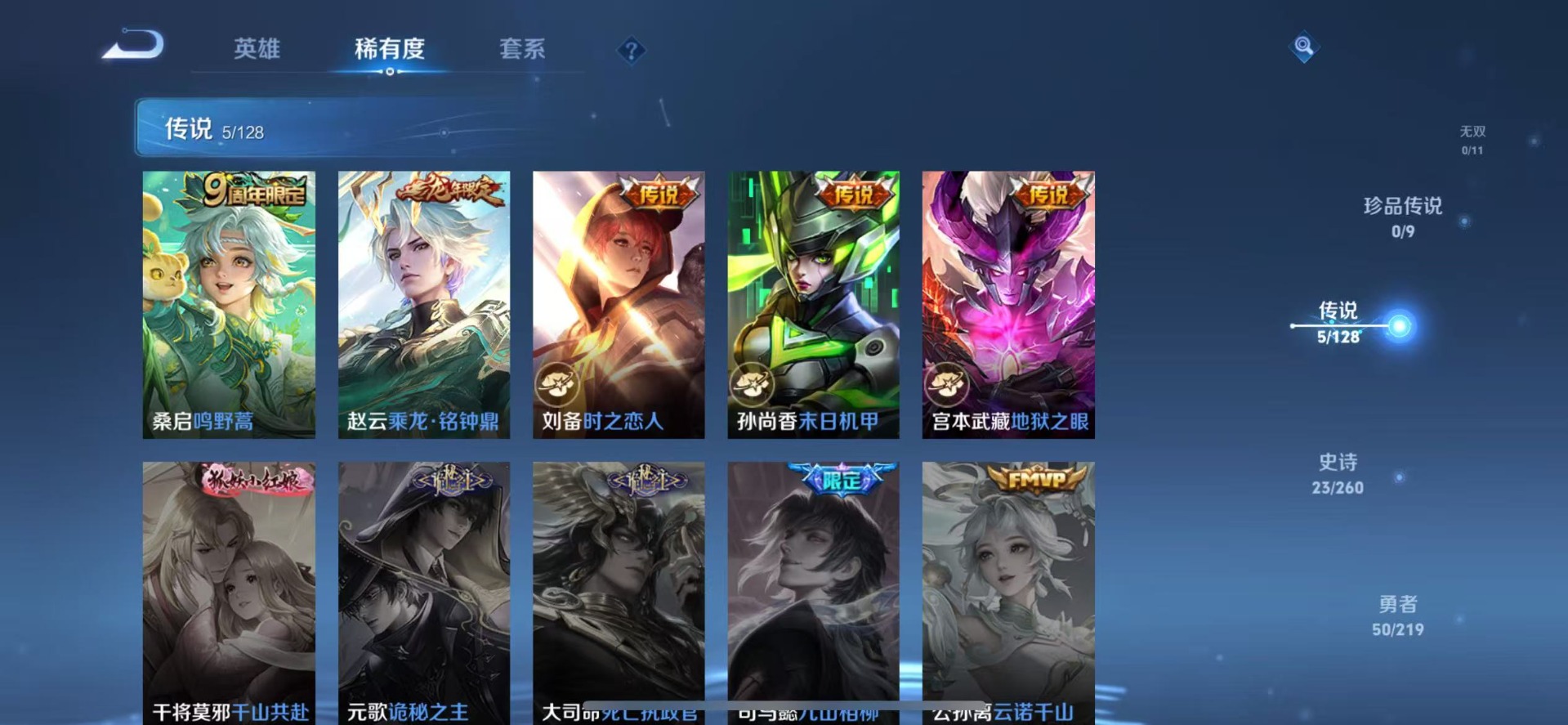 - [11968227]V9 2典藏 25传说 124英雄 284皮肤 典藏英雄武则天 可修改实名 优质装备:杀手不太冷,全息碎影(猴子典藏),黄金狮子座,黄金射手座,冠军飞将,一念神魔,云霓雀翎,末日机甲-孙尚香(绿蚂蚱),地狱火,仲夏夜之梦(大飞蛾),海洋之心,地狱之眼,时之恋人-刘备(电焊工),淬星耀世,超时空战士-狄仁杰,无双飞将,鹤羽星尊,鹤归松栖(云缨),澜逐花归海,牧神诗旅 珍宝阁皮:妄想食味,优雅恋人 限定皮:愿照·九州拓(澜年限),鸣野蒿,白虎志(电光耗子),凤求凰(白切鸡),太华(伽罗年限),神威(电光马子),飞衡(韩信年限),高山流水,游园惊梦,梁祝,龙胆,岱宗(典韦年限),天狼征服者,天狼绘梦者,李小龙,辉光之辰,如梦令-后羿,神奇女侠,寅虎·赤拳(老虎年限),山海·玄木吟(马可年限) 史诗皮:化蝶舞,星界战将,龙之律动,藏狐·褐绒,石田雨龙,茶境仙,破空之剑,埋骨钱,百相守梦-百里守约,星界特工,紫霞仙子,苍穹之光,电玩小子(小书包),白龙吟,黄金分割率,特工魅影,千年之狐,江河有灵,百解令(蒙犽),高渐离燃音魔法,蒙恬荣光圣徽,无限星赏官,冰冠公主,青蛇,偶像歌手,暗夜猫娘,末日机甲-吕布,猫狗日记-孙策,时之恋人-孙尚香,乱世虎臣,节奏热浪,修罗,摇滚巨星,水果甜心,天才门将,星夜王子,心灵骇客,功夫厨神,德古拉伯爵,暗隐猎兽者,幽灵船长,鬼剑武藏,暗渊魔法,心灵战警,乐园奇幻夜,纤云弄巧,拒霜思,缤纷独角兽,乘风破浪,逐浪之夏,水晶猎龙者,曙光守护者,箭羽风息,金属风暴,原初追逐者,圣诞狂欢,圣诞恋歌,鹰眼统帅,暗夜贵公子,魅力维加斯,黎明之约,雪上飞焰,赏金猎手