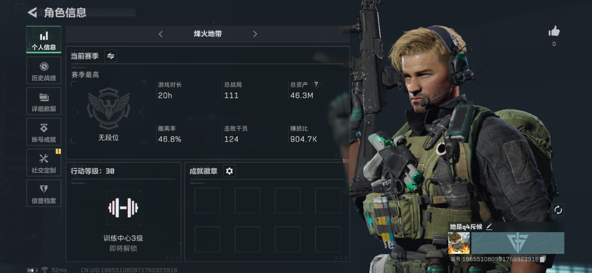 [11681304]总资产:46.3 1传说枪械 可二次 可修改实名 安全保护中 烽火地带段位:无段位 全面战场段位:无段位 哈夫币:35.027 传说武器皮肤:复合弓-黑-天际线