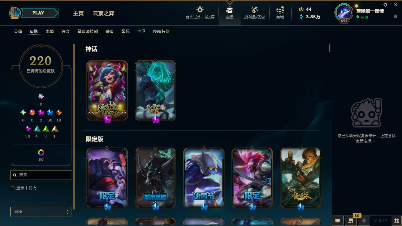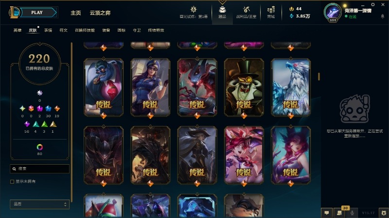 [11681330]2神话 2臻彩 29限定 19传说 220皮肤 100炫彩 170英雄 可二次 可修改实名 优质装备:无畏骑士 瑟庄妮 赤子初心,红莲之刃 锐雯 皮肤:腥红之月 派克,雷霆领主 奥恩,星之守护者 霞,暮星之羽 霞,永恒之森 巴德,SKT T1 卡莉丝塔,腥红之月 卡莉丝塔,糖果之王 艾翁,冠军典狱长 锤石,深渊恐惧 锤石,玉剑传说 寒潭夭夭,源代码 娜美,海皇姬 娜美,胜利之剑 亚托克斯,腥红之月 亚托克斯,霸天剑魔 亚托克斯,炼狱魔女 蔚,胜利枪神 卢锡安,西部魔影 卢锡安,源计划:雷 卢锡安,源计划:疯狂 金克丝,奥德赛 金克丝,星之守护者 金克丝,黑帮狂花 金克丝,银河魔装机神 千珏,源计划:升华 烬,猛虎 布隆,屠龙勇士 布隆,战地机甲 维克兹,黑夜使者 亚索,源计划:风 亚索,最后一只恐龙 纳尔,神龙尊者 玉境灵龙 卡莎,K/DA 卡莎,驯龙女巫 婕拉,血羽凤凰 奎因,无限烈焰 黛安娜,暗黑女武神 黛安娜,源代码 丽桑卓,血石妖后 丽桑卓,战斗学院 杰斯,全金属狂潮 杰斯,地下都市 梦魇 德莱厄斯,生化骑士 德莱厄斯,电玩战魂 赫卡里姆,幽魂骑士 赫卡里姆,德莱德莱德莱文,灵魂收割者 德莱文,驯龙女巫 璐璐,泳池派对 吉格斯,玉剑传说 无双,皇家守卫 菲奥娜,胜利女神 瑟庄妮,瑟庄妮·逐晓者,魄罗骑士 瑟庄妮,野兽女王 瑟庄妮,光明骑士 诺提勒斯,失落大陆 诺提勒斯,白色死神 韦鲁斯,坚韧不屈 沃利贝尔,雷霆领主 沃利贝尔,胜利枪神 格雷福斯