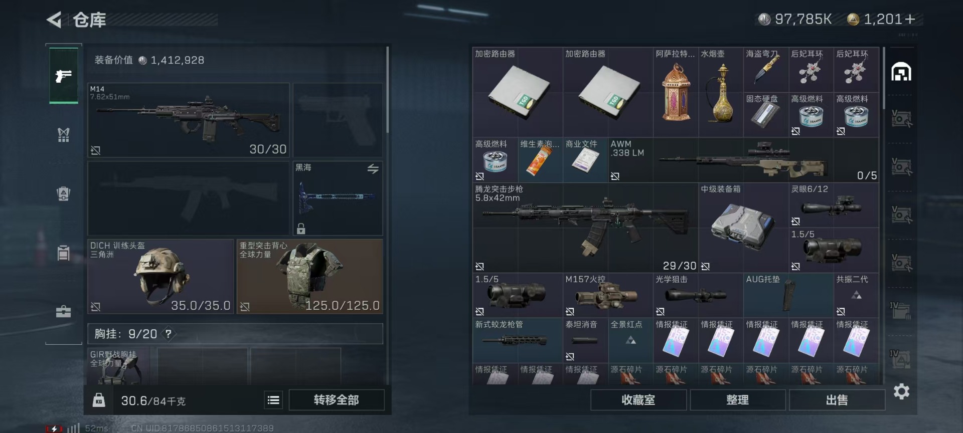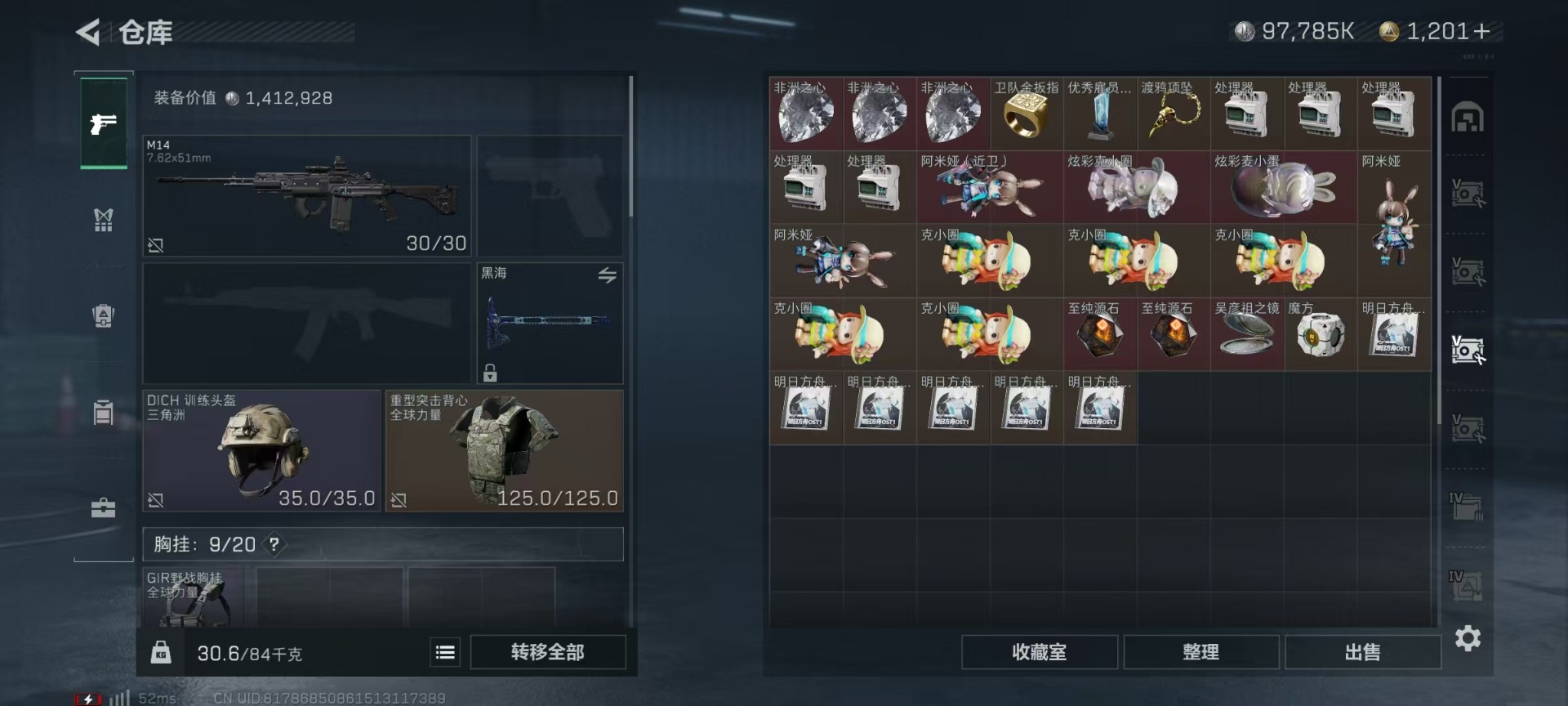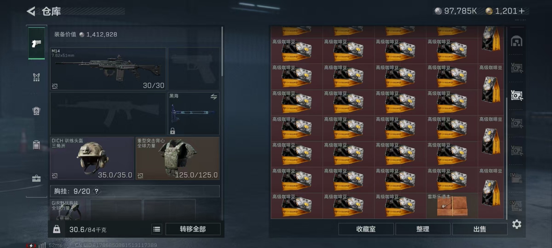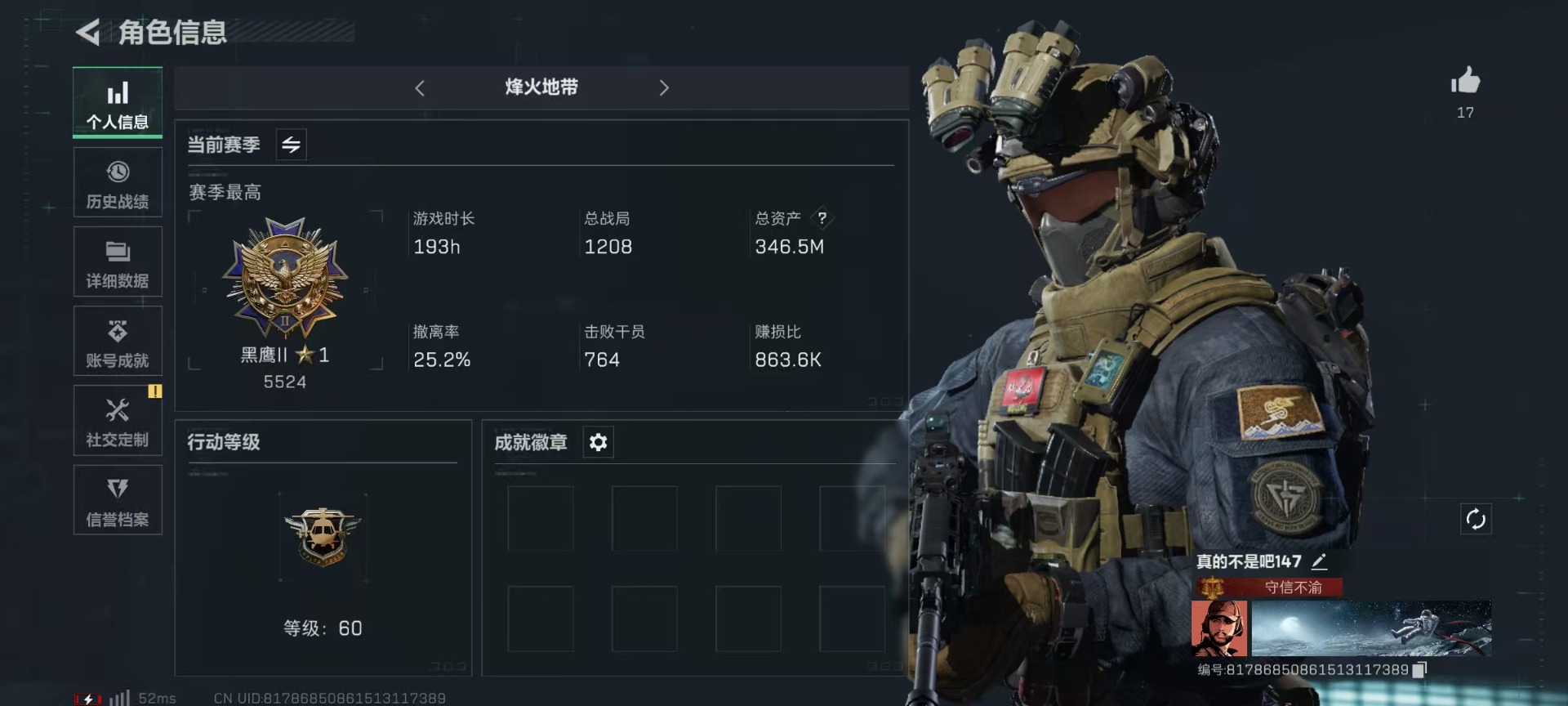 [11681452]总资产:346.5M 1近战传说 8传说枪械 哈夫币:97.785K 顶级安全箱(3×3)9.15号到期 可二次 可修改实名 优质装备:近战-黑海,顶级安全箱(3x3) 烽火地带段位:黑鹰 全面战场段位:列兵 传说武器皮肤:AK-12突击步枪-夜鹰,SMG45冲锋枪-骑士,CAR-15突击步枪-阿米娅,AK-12突击步枪-特斯拉线圈,SR-3M紧凑突击步枪-特斯拉线圈,UZI冲锋枪-特斯拉线圈,MP5冲锋枪-黑海 史诗武器皮肤:AS Val突击步枪-尖端治疗,Ash-12战斗步枪-守夜人,MP5冲锋枪-深海恐惧,AKM突击步枪-林中猎手,M16A4突击步枪-竞赛选手,PTR-32突击步枪-英雄,腾龙突击步枪-无垢,QBZ95-1突击步枪-曙光
