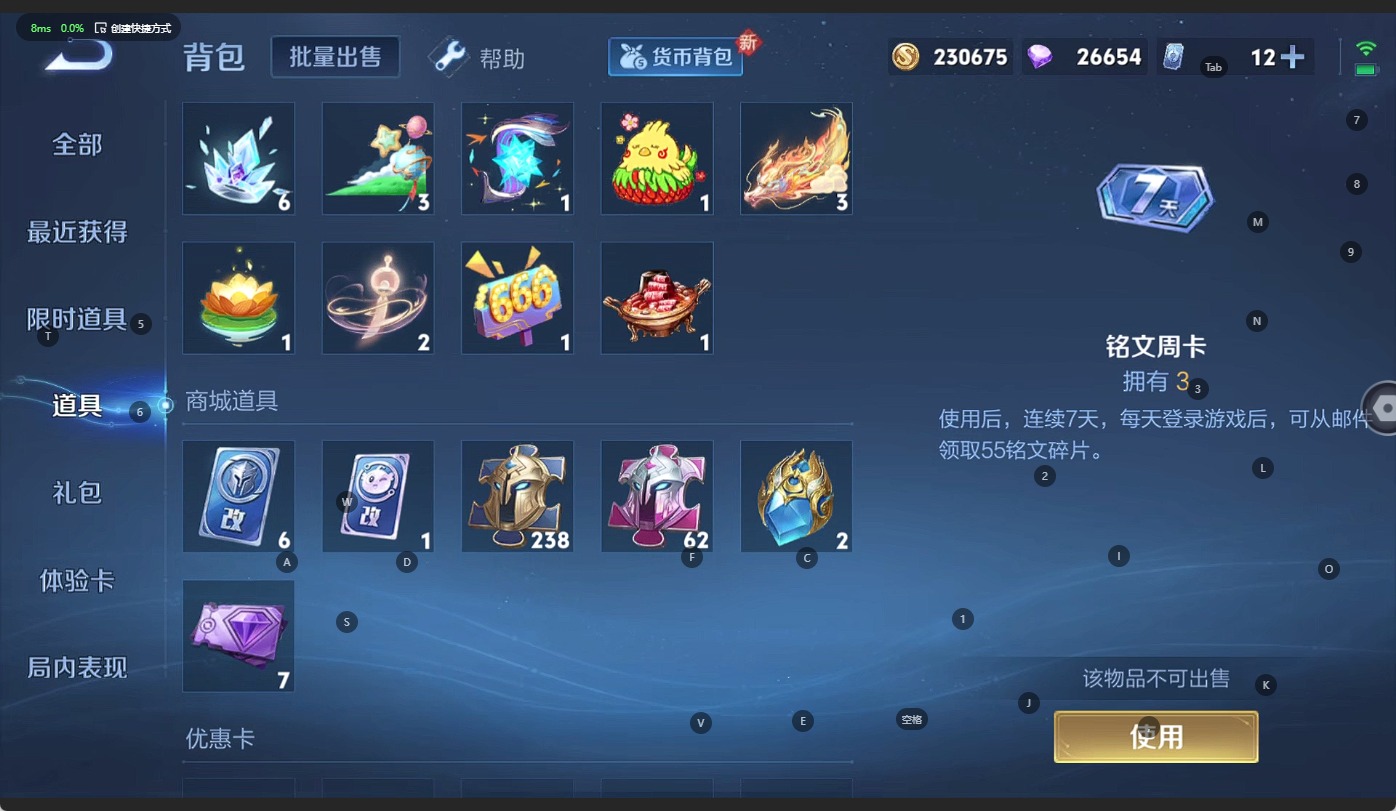 [11681466]V8 1典藏 10传说 124英雄 284皮肤 可修改实名 优质装备:弑枪猎影(韩信典藏),黄金射手座,云鹰飞将(小将军),一念神魔,仲夏夜之梦(大飞蛾) 传说皮:幻光神枪 珍宝阁皮:妄想食味,蔷薇恋人,玩趣恶龙 限定皮:愿照·山河定(司空震年限),逐霄战戟,鸣野蒿,傲雪梅枪,飞衡(韩信年限),山海·碧波行(瑶年限),诗剑行,五谷丰年,青龙志(铠年限),梁祝,御风骁将(吕布年限),龙胆,天狼征服者,如梦令-后羿,霸王别姬-虞姬,孙行者,大圣娶亲,时之祈愿-瑶(瑶传限),百木心枪,时之奇旅-妲己 史诗皮:鸭鸭历险记-刘禅,龙之律动,石田雨龙,茶境仙,破空之剑,战舞者,蔬乡物语(鲁班七号),乘龙·忆丹青(大乔年限),遇见神鹿,电玩小子(小书包),黄金分割率,特工魅影,千年之狐,永昼,百解令(蒙犽),高渐离燃音魔法,偶像歌手,暗夜猫娘,魅语,晚萤,末日机甲-吕布,猫狗日记-孙策,猫狗日记-大乔,时之恋人-孙尚香,乱世虎臣,修罗,女仆咖啡,水果甜心,绅士熊喵,天才门将,星夜王子,心灵骇客,功夫厨神,德古拉伯爵,暗隐猎兽者,幽灵船长,鬼剑武藏,暗渊魔法,心灵战警,天秀·启明,繁星吟游(呼啦呼啦),缤纷独角兽,乘风破浪,逐浪之夏,月团寄思,水晶猎龙者,曙光守护者,金属风暴,圣诞狂欢,鹰眼统帅,暗夜贵公子,魅力维加斯,未来纪元-赵云