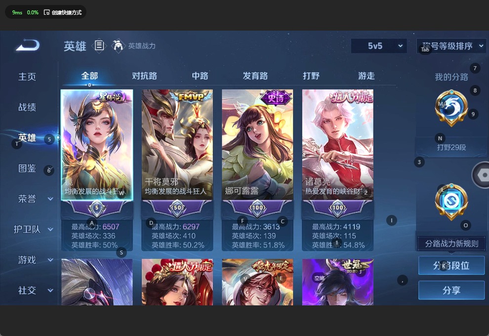 - PX_2089837-实名: 可修改 贵族等级: V5 英雄数: 103 皮肤数: 71 传说皮: 一念神魔 限定皮: 李小龙,梁祝,时雨天司,朱雀志