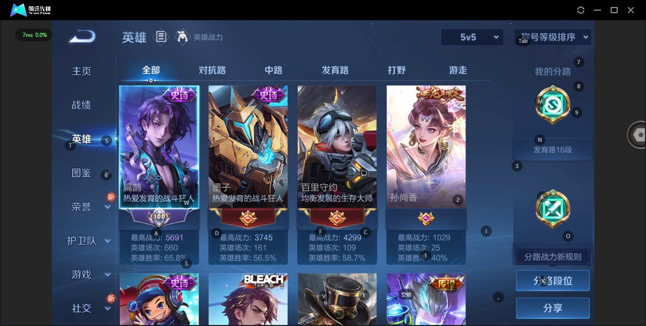 - [11527197]V7 1典藏 1传说 123英雄 171皮肤 可修改实名 优质装备:全息碎影(猴子典藏) 珍宝阁皮:妄想食味,蔷薇恋人,玩趣恶龙 限定皮:鸣野蒿,至尊宝,高山流水,五谷丰年,李小龙,辉光之辰,大圣娶亲 史诗皮:苍穹之光,电玩小子(小书包),特工魅影,冰冠公主,偶像歌手,龙骑士(小龙虾),猫狗日记-孙策,乱世虎臣,节奏热浪,女仆咖啡,摇滚巨星,水果甜心,功夫厨神,德古拉伯爵,暗隐猎兽者,幽灵船长,鬼剑武藏,逐浪之夏,曙光守护者,金属风暴,鹰眼统帅,魅力维加斯,未来纪元-赵云