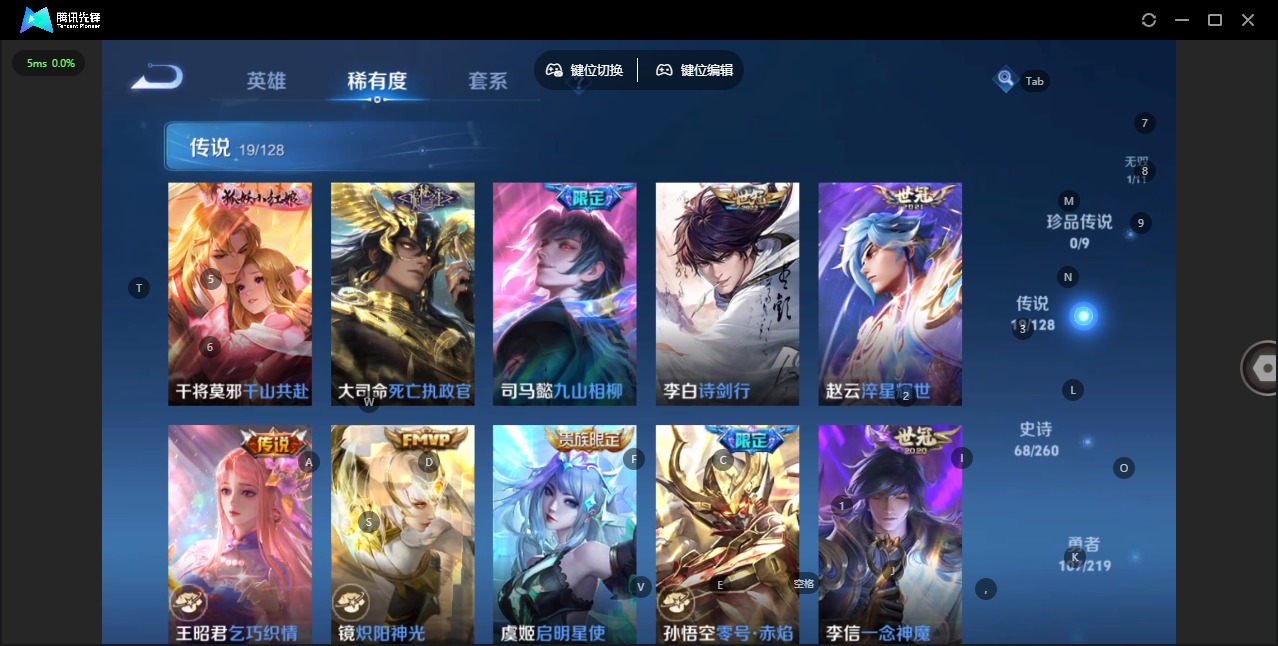- [11218475]V7 5传说 123英雄 170皮肤 可修改实名 优质装备:末日机甲-孙尚香(绿蚂蚱),地狱火,无双飞将 传说皮:幻光神枪 珍宝阁皮:女武神 限定皮:鸣野蒿,梁祝 史诗皮:化蝶舞,紫霞仙子,苍穹之光,白龙吟,特工魅影,千年之狐,江河有灵,蒙恬荣光圣徽,偶像歌手,水果甜心,德古拉伯爵,暗隐猎兽者,幽灵船长,鬼剑武藏,心灵战警,逐浪之夏,水晶猎龙者,金属风暴,原初追逐者,圣诞狂欢,圣诞恋歌,鹰眼统帅,王者之锤,魅力维加斯,黎明之约,无心,未来纪元-赵云