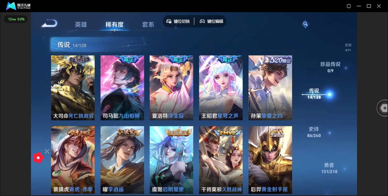 - [11603836]V5 1典藏 1传说 123英雄 203皮肤 可修改实名 荣耀水晶:神鉴启示录 珍宝阁皮:女武神 限定皮:鸣野蒿,冰锋战神,梁祝,李小龙,大圣娶亲,引擎之心 史诗皮:星界战将,器灵·浮梦炉,蒙犽顽岩魄,苍穹之光,黄金分割率,特工魅影,千年之狐,蒙恬荣光圣徽,冰冠公主,晚萤,末日机甲-吕布,时之恋人-孙尚香,乱世虎臣,节奏热浪,修罗,摇滚巨星,水果甜心,星夜王子,心灵骇客,德古拉伯爵,暗隐猎兽者,幽灵船长,鬼剑武藏,舞动绿茵,地狱岩魂,纤云弄巧,繁星吟游(呼啦呼啦),缤纷独角兽,乘风破浪,逐浪之夏,水晶猎龙者,金属风暴,原初追逐者,圣诞狂欢,圣诞恋歌,鹰眼统帅,魅力维加斯,黎明之约,未来纪元-赵云