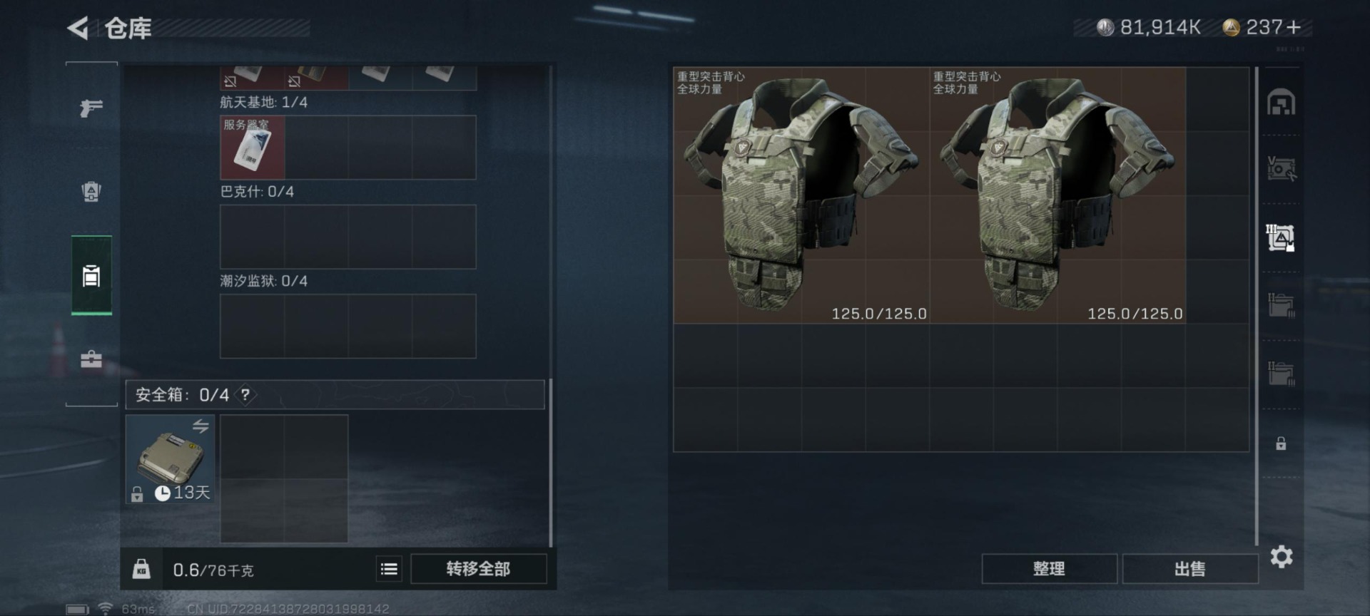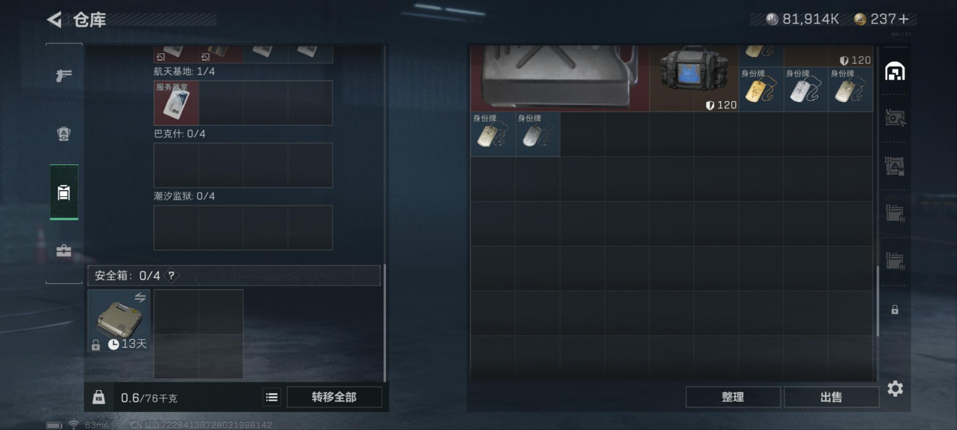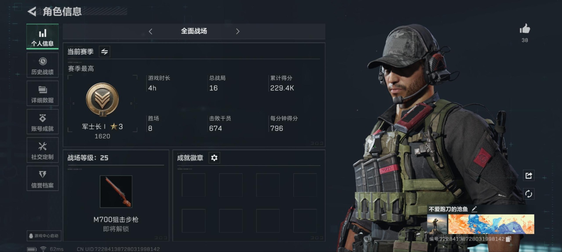 [11681646]总资产:133.6M 10传说枪械 哈夫币:81.914K 进阶安全箱(2×2)9.15号到期 可二次 可修改实名 烽火地带段位:黑鹰 全面战场段位:军士长 传说武器皮肤:UZI冲锋枪-特斯拉线圈,M16A4突击步枪-狩猎时刻,AK-12突击步枪-特斯拉线圈,SR-3M紧凑突击步枪-特斯拉线圈,勇士冲锋枪-能天使-午夜邮差,Vector冲锋枪-狩猎时刻,G3战斗步枪-狩猎时刻,复合弓-黑-天际线,M4A1突击步枪-阿米娅,CAR-15突击步枪-阿米娅 史诗武器皮肤:PKM通用机枪-蝮蛇,M16A4突击步枪-竞赛选手,M1014霰弹枪-林中猎手,AKM突击步枪-林中猎手,QJB201轻机枪-Old Habits,SV-98狙击步枪-林中猎手,PTR-32突击步枪-英雄,SV-98狙击步枪-囚徒,SCAR-H战斗步枪-囚徒,QBZ95-1突击步枪-曙光