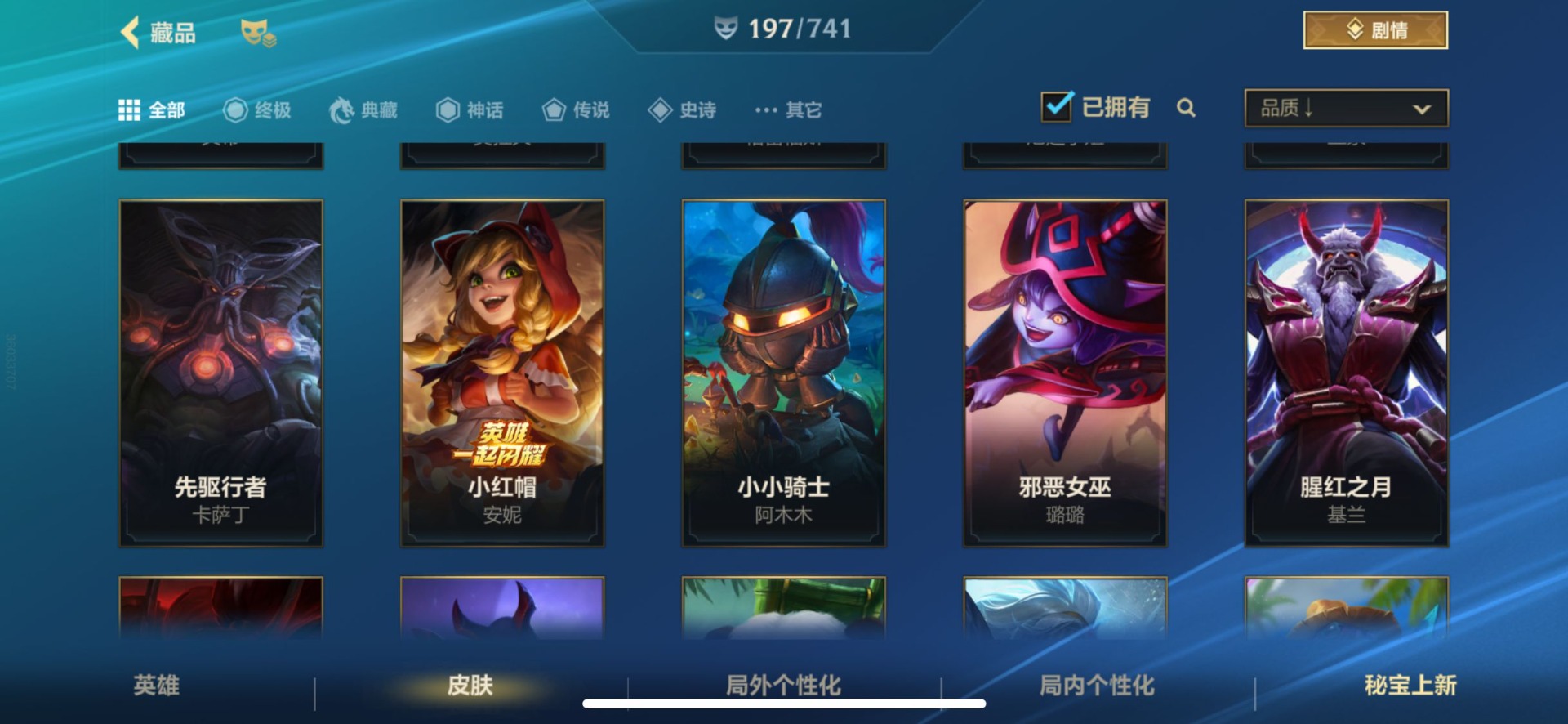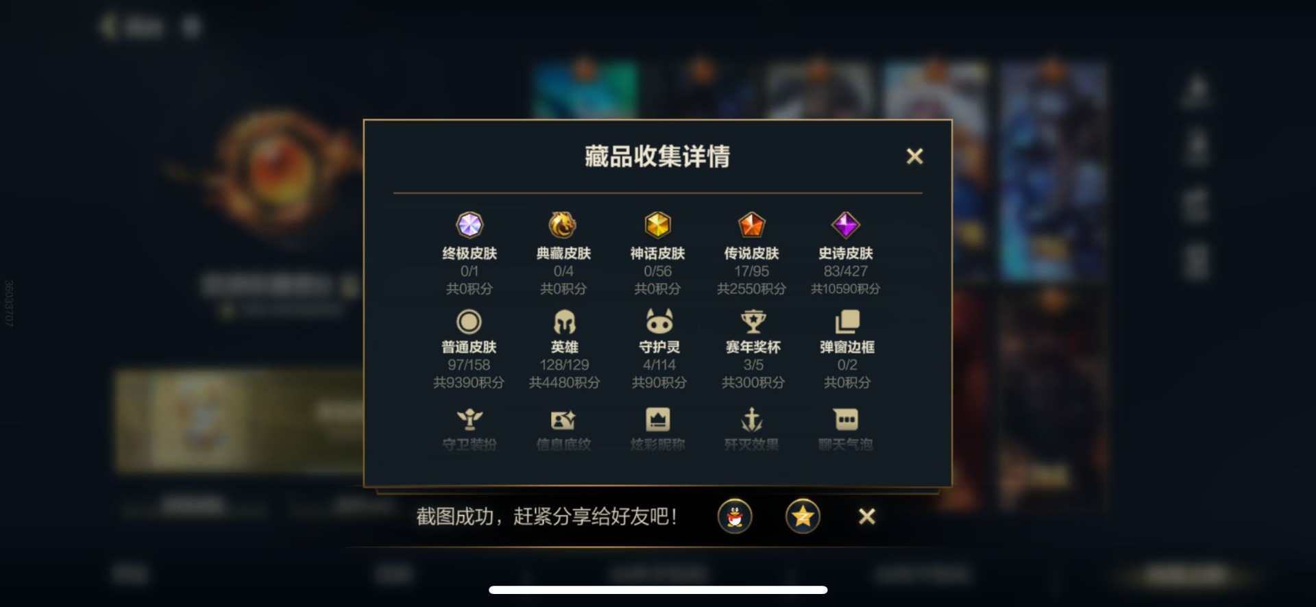 - PX_2093833-贵族0/皮肤201/典藏1/传说3/史诗60/英雄122/星空梦想/蔷薇恋人/特工战影/胡桃夹子/胖达荣荣/乞巧织情/花朝如约/狄仁杰阴阳师/赵云皇家上将/墨子神迹守卫/蔷薇恋人/云端筑梦师/庄周高山流水/阿轲迷踪丽影/天狼运算者/扁鹊奇幻香踪/白晶晶/芈月幻夜卜梦/赤莲之焰/云间偶戏/朔风刀/幽恒/女儿国国王/暗影游猎/狄仁杰魔术师/万华元夜/达摩星际陆战队/沙漠行僧/项羽