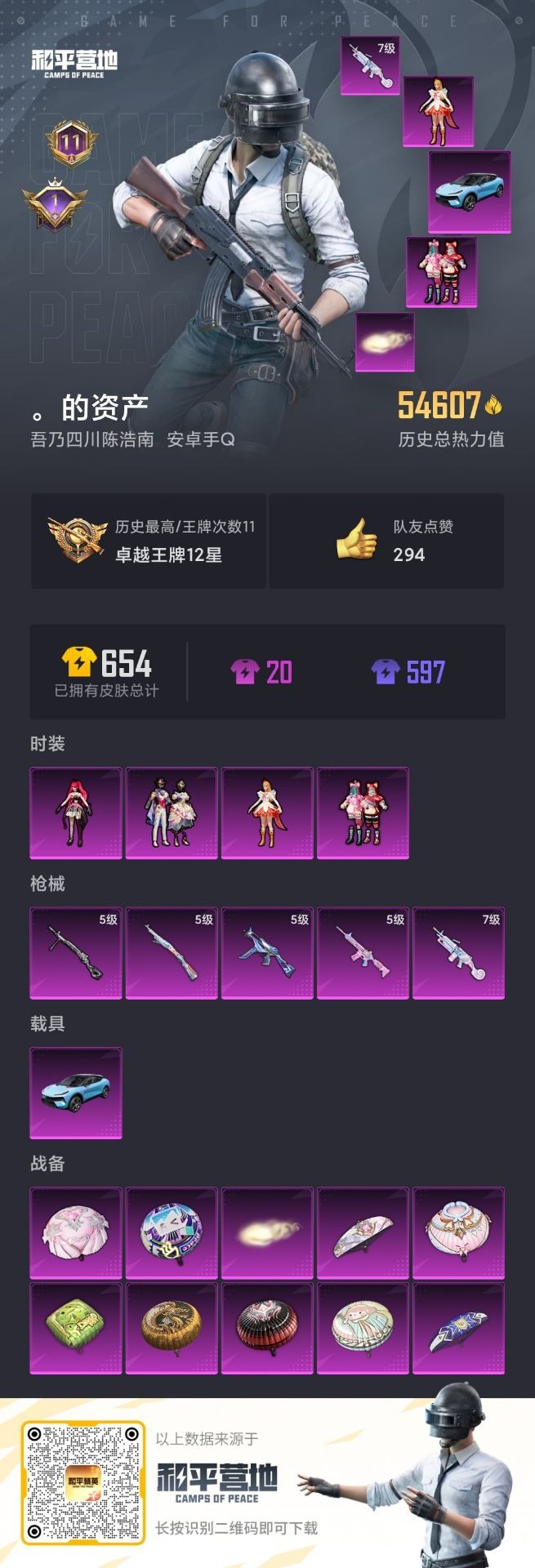 - PX_2110159- 安卓手Q-10王牌印记-3粉装-5特效枪-4载具-64295热力值-135套装-184枪皮-0卓越印记-0传奇印记 【3粉装】,未来领航者,筑梦精灵,沙场疾风 【5特效枪】SCAR-L-锦绣绵绵-5级 M416-心之恋语-7级 GROZA-旋转彩虹-7级 Kar98K-巳巳如意-5级 莫辛纳甘-未来领航者-7级 【3稀有紫装】,Mark.06,8号机,龟仙人, 【4稀有载