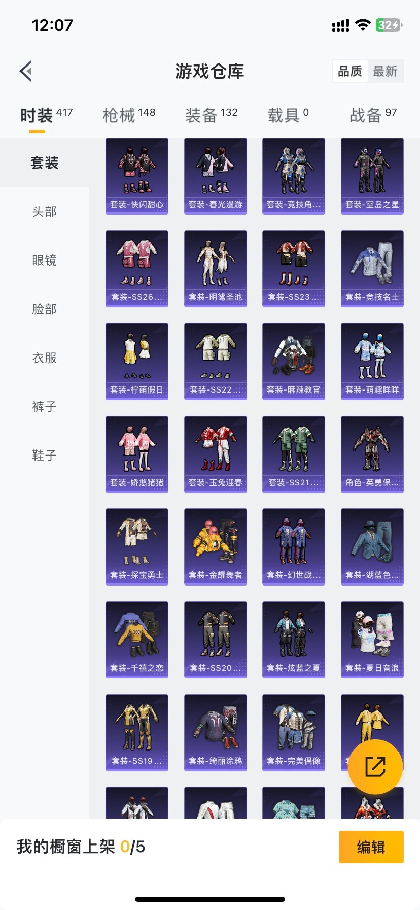 - [11414072]7粉装 3特效枪 8印记 可二次 可修改实名 身法装备:都市猎人 优质装备:都市猎人,宝贝奶油派,SCAR-L-锦绣绵绵,智耀战神,Kar98K-巳巳如意 热门装扮:未来歌姬,水仙星,暖暖奶龙,圣堂之誓,守护天翼,都市猎人 稀有枪皮:DP-28-豹影疾电 五级特效枪:五级Kar98K-巳巳如意,五级DP-28-豹影疾电,五级SCAR-L-锦绣绵绵 紫色装扮:SS22特训,SS23特训,娇憨猪猪,酸甜橘柚,萌趣咩咩,SS21特训,SS31特训套装,人气偶像,冰川特警,冷焰舞者,极速光影,SS30特训套装,云朵鹅,雪绒豹,SS33特训套装,SS20特训,猎梦纪元,SS19特训,军刀雅典娜,豚鼠丹丹,浑天鲲鹏,甜心亚梦,虚音幻奏,雪兔飞飞,都市魅力,酒红色名流,长空猛禽,霓虹街区,青年教官,荣耀,荧惑魅影,蓝彩潮人,蓝色运动,街头潮人,魅力单车,麻辣教官,黄色伏地魔,黄色名流,黄色运动,黎明保卫者,黑色伏地魔,龙的传人,龟仙人,冰河战士,蝶变,极地朋克,极速红龙,柠萌假日,橘黑制服,海岛探路者,涂山之恋,深蓝色名流,清新柠檬,夏日倾情,夏日音浪,完美偶像,帅气教官,幻世战舞者,战地督导,探宝勇士,湖蓝色名流,绮丽涂鸦,白色伏地魔,破蛋小黄鸡,空岛之星,竞技达人朋克,红色运动,王牌教练,牛气冲天,灼焰舞者,炫蓝之夏,热血青春,牛气满满,猛禽,猎鹰,小熊娃娃,雏菊兔兔,萝兰蝴蝶,SS29特训,先驱飞行员,白光莹,纯真浪花,热情海星,SS28特训,暗影刺翼,石蕴玉辉,鱼渊荷华,玉兔迎春,燕燕于飞,巳巳如意,海琴烟,都市丽猫,青团波波,糖糖葫芦,竞技名士,绒宝小鹅,摩登魅猫,街头风暴,果汁能量,惊鸿侠骨,甜梦熊熊,神气柴柴,懵萌河马,SS24特训(SS24特训套装),萤火魅影(套装-荧惑魅影),SS25特训,绝对偶像,锦衣飞扬,粉红小猪,焰鹰斗篷,幻羽潜行,幽夜迷踪,SS27特训,明鸳圣池,浪漫天命,SS26特训,春光漫游,快闪甜心,贝斯之夜,智谋强哥,晶辉守护,精神漫游,大橘大利,耀粉歌者,春日漫步,蓝冰羽,紫幽梦,SS32特训服(SS32特训套装),瑰梦爱神,青玉碎影,绯格组合,恋语绒绒,金耀舞者,光之冒险 优质战备:创世·救赎降落伞,精灵梦叶罗丽降落伞,星途旅人降落伞,宇宙意志降落伞,江南烟雨降落伞,猪猪侠降落伞,幻彩电音降落伞,冷漠罗丽降落伞,环太平洋降落伞,纯梦嫁纱降落