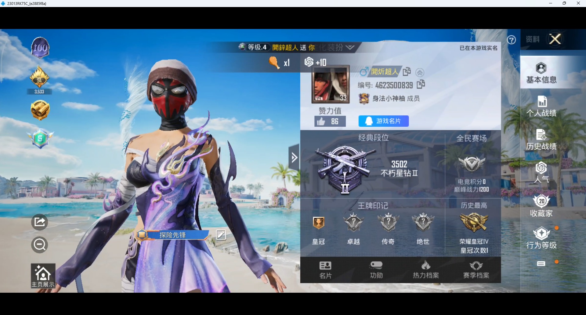 - [11350418]总资产:668.2M 2干员外观 2近战传说 16传说枪械 哈夫币:232K 高级安全箱(2×3)9.15号到期 可二次 可修改实名 优质装备:近战-黑海,近战-北极星 烽火地带段位:钻石 全面战场段位:上等兵 传说武器皮肤:SR-25射手步枪-水墨云图,G18-飞虎,SMG45冲锋枪-骑士,M16A4突击步枪-狩猎时刻,复合弓-黑-天际线,Vector冲锋枪-狩猎时刻,G3战斗步枪-狩猎时刻,QCQ171冲锋枪-北极星,勇士冲锋枪-能天使-午夜邮差,725双管霰弹枪-送葬人-无题密令,K437突击步枪-北极星,MP5冲锋枪-黑海,QJB201轻机枪-黑海,P90冲锋枪-神秘艺术 干员外观:红狼-蚀金玫瑰,骇爪-水墨云图