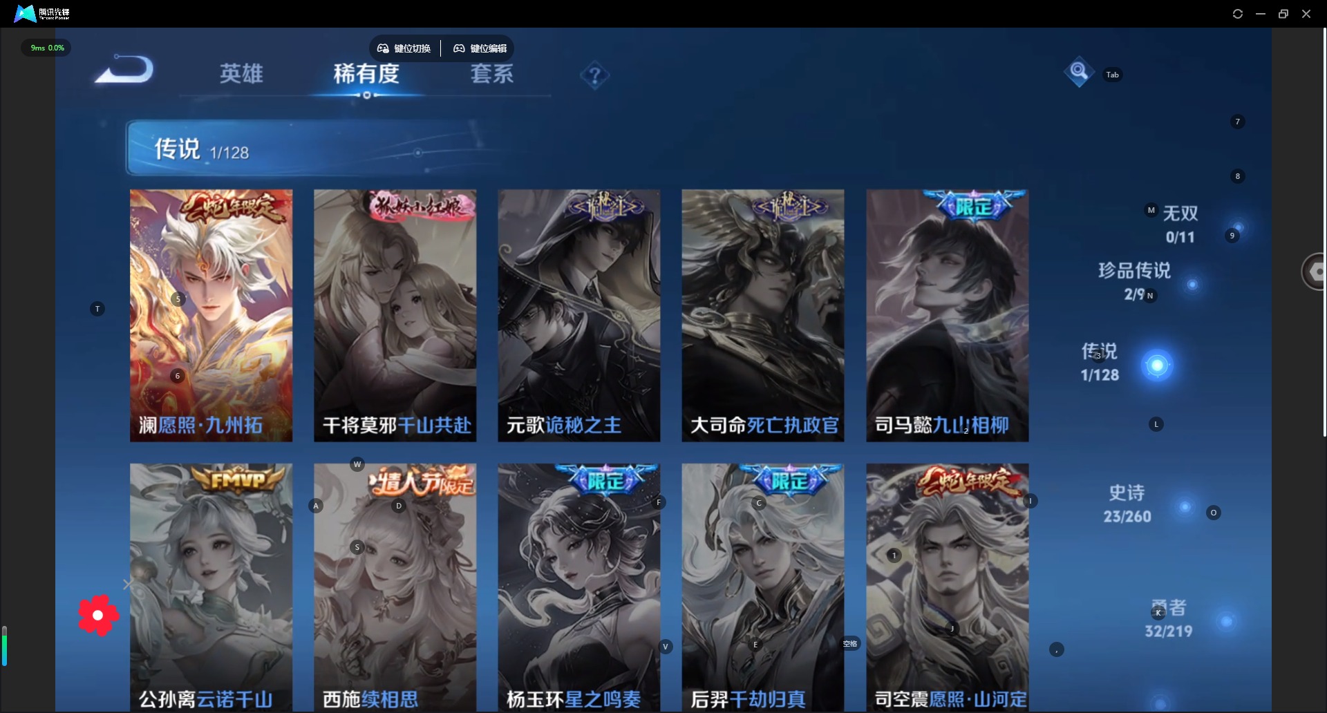 - [12116291]V7 8传说 123英雄 134皮肤 可修改实名 女号 优质装备:黄金狮子座,云鹰飞将(小将军),一念神魔,地狱之眼,淬星耀世 珍宝阁皮:蔷薇恋人 限定皮:鸣野蒿,时雨天司(水龙头),遇见飞天,高山流水,五谷丰年,青龙志(铠年限),御风骁将(吕布年限),李小龙,默契交锋-花木兰,寅虎·赤拳(老虎年限) 史诗皮:龙之律动,星界战将,百相守梦-周瑜,电玩小子(小书包),千年之狐,永昼,蒙恬荣光圣徽,晚萤,猫狗日记-孙策,乱世虎臣,节奏热浪,修罗,摇滚巨星,水果甜心,天才门将,心灵骇客,幽灵船长,鬼剑武藏,天秀·启明,舞动绿茵,纤云弄巧,缤纷独角兽,水晶猎龙者,曙光守护者,金属风暴,原初追逐者,圣诞狂欢,鹰眼统帅,魅力维加斯,黎明之约,未来纪元-赵云