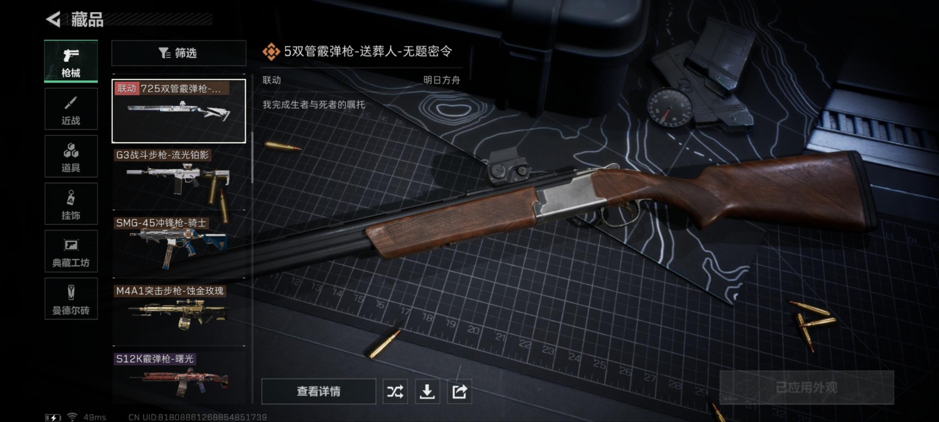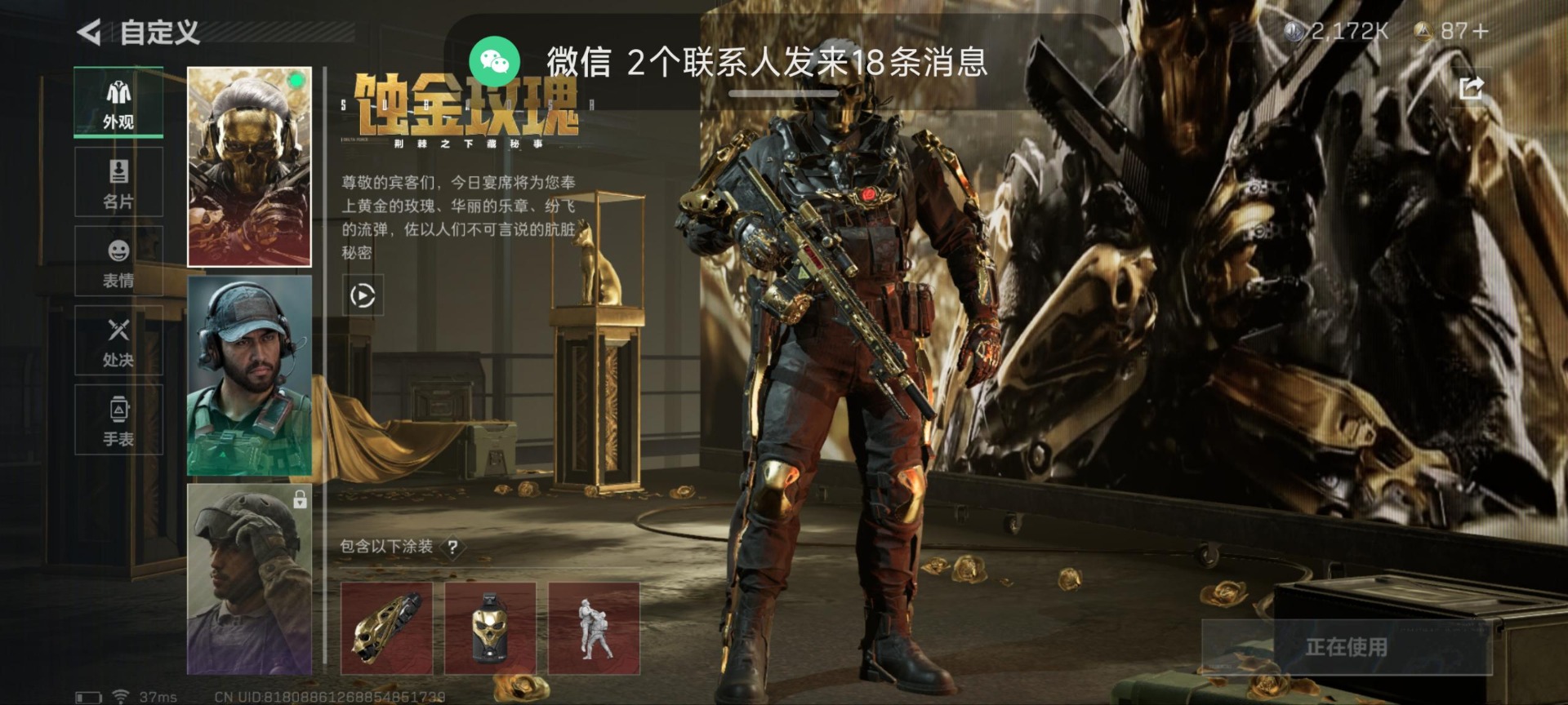 [11682619]总资产:98.8M 2干员外观 11传说枪械 哈夫币:2.175K 高级安全箱(2×3)9.15号到期 可二次 可修改实名 烽火地带段位:钻石 全面战场段位:军士长 传说武器皮肤:SMG45冲锋枪-骑士,G3战斗步枪-流光铂影,M4A1突击步枪-阿米娅,CAR-15突击步枪-阿米娅,复合弓-黑-天际线,AWM狙击步枪-捞点薯条,腾龙突击步枪-捞点薯条,93R-捞点薯条,勇士冲锋枪-能天使-午夜邮差,725双管霰弹枪-送葬人-无题密令,M4A1突击步枪-蚀金玫瑰 史诗武器皮肤:Vector冲锋枪-潜袭者,SG552突击步枪-深海恐惧,SVD狙击步枪-荒野求生,M250通用机枪-囚徒,SV-98狙击步枪-囚徒,SCAR-H战斗步枪-囚徒,腾龙突击步枪-无垢,MP7冲锋枪-无垢,S12K霰弹枪-曙光,M700狙击步枪-竞技风 干员外观:红狼-蚀金玫瑰,露娜-黑·天际线