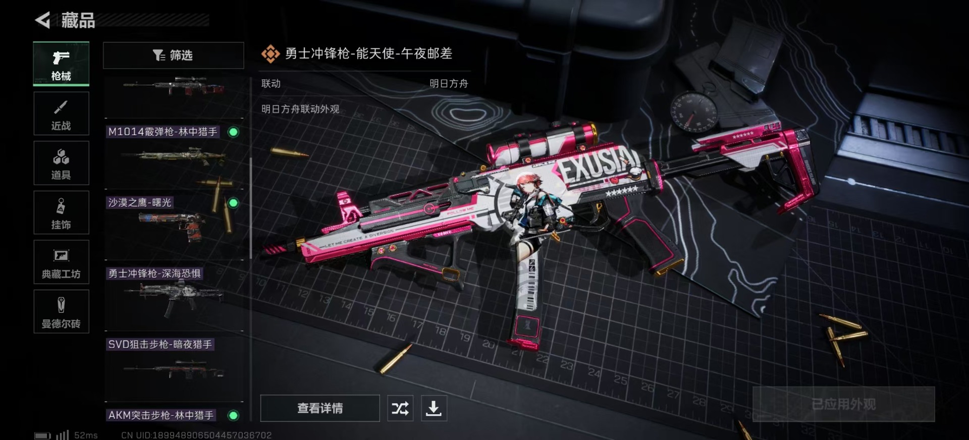 - [11608050]总资产:129.9M 1干员外观 11传说枪械 哈夫币:52.189K 高级安全箱(9.17到期) 可二次 可修改实名 烽火地带段位:铂金 全面战场段位:无段位 传说武器皮肤:UZI冲锋枪-特斯拉线圈,AWM狙击步枪-捞点薯条,腾龙突击步枪-捞点薯条,93R-捞点薯条,AK-12突击步枪-特斯拉线圈,SR-3M紧凑突击步枪-特斯拉线圈,勇士冲锋枪-能天使-午夜邮差,复合弓-黑-天际线,725双管霰弹枪-送葬人-无题密令,M4A1突击步枪-阿米娅,CAR-15突击步枪-阿米娅 史诗武器皮肤:AUG突击步枪-蝮蛇,勇士冲锋枪-深海恐惧,M16A4突击步枪-竞赛选手,SV-98狙击步枪-林中猎手,SV-98狙击步枪-囚徒,腾龙突击步枪-无垢,MP7冲锋枪-无垢,SVD狙击步枪-荒野求生,SR-3M紧凑突击步枪-荒野求生,PKM通用机枪-荒野求生 干员外观:蜂医-送葬人·无题密令(S5)