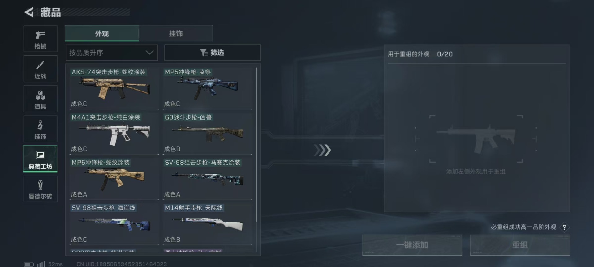 - PX_2095934-实名: 可修改 贵族等级: V3 v武器: MK47-云舞,81式-光明之神,M4A1-冰锋觉醒,M4A1-海骑士,AK47-血武士,MK47-仁德,AK47-雷麒麟,QBZ19-天使,AUG-机械纪元,SCAR-文远,M4A1-仲达,M4A1-龙血,剑齿虎-炫彩,AK47-黑武士觉醒,M4A1-死神,M4A1-雷神,TAC-天使,MR1-龙吟惊沧海,M200-幻神,98K-