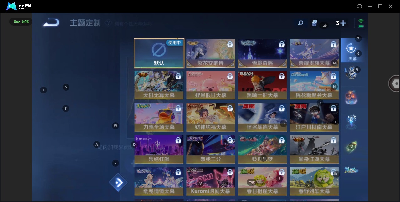 夏侯惇乘风破浪,阿轲节奏热浪,铠曙光守护者,赵怀真器灵·浮梦炉,露娜紫霞仙子,诸葛亮黄金分割率,刘禅绅士熊喵,宫本武藏鬼剑武藏,兰陵王暗隐猎兽者,李白谪仙醉月,花木兰水晶猎龙者,安琪拉心灵骇客,蒙犽百解令,嬴政摇滚巨星,墨子金属风暴,澜赏金猎手,嫦娥拒霜思,钟馗乐园奇幻夜