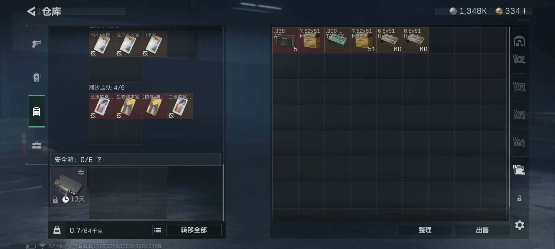 - [12063785]总资产:183.2M 6传说枪械 哈夫币:17.088K 进阶安全箱(2×2)9.15号到期 可二次 可修改实名 烽火地带段位:黑鹰 全面战场段位:无段位 传说武器皮肤:M4A1突击步枪-阿米娅,CAR-15突击步枪-阿米娅,AWM狙击步枪-捞点薯条,腾龙突击步枪-捞点薯条,93R-捞点薯条,勇士冲锋枪-能天使-午夜邮差 史诗武器皮肤:M700狙击步枪-蝮蛇,M16A4突击步枪-竞赛选手,SV-98狙击步枪-林中猎手,M250通用机枪-囚徒