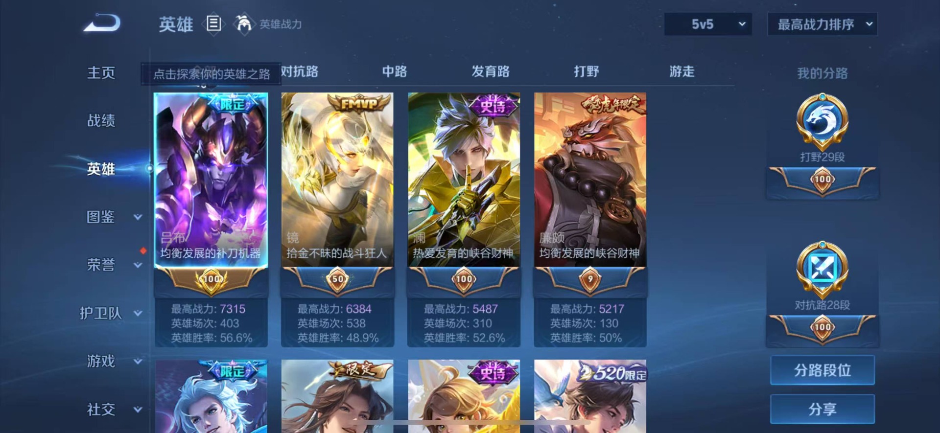 - [11650666]V7 11传说 123英雄 113皮肤 可修改实名 优质装备:猫影幻舞,一念神魔,末日机甲-孙尚香(绿蚂蚱),仲夏夜之梦(大飞蛾),无双飞将,山海·炽霜斩(李信年限) 珍宝阁皮:蔷薇恋人 限定皮:逐霄战戟,鸣野蒿,前尘镜,瑞麟志(木兰年限),诗剑行,齐天大圣,五谷丰年,李小龙,热情桑巴,枫霜尽 史诗皮:鸭鸭历险记-刘禅,龙之律动,百相守梦-黄忠,紫霞仙子,黄金分割率,江河有灵,晚萤,龙骑士(小龙虾),末日机甲-吕布,摇滚巨星,水果甜心,功夫厨神,暗隐猎兽者,鬼剑武藏,逐浪之夏,曙光守护者,箭羽风息,圣诞狂欢,魅力维加斯,无心,未来纪元-赵云