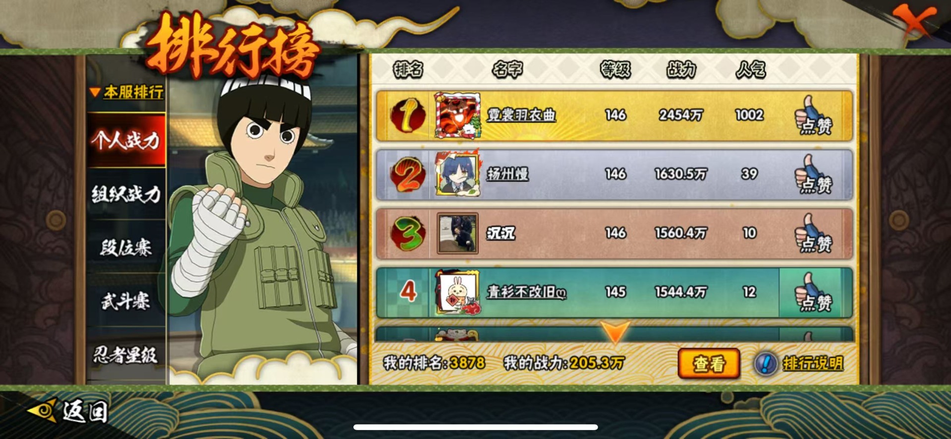 - 火影忍者手游/QQ/苹果QQ1-100区/1区李洛克