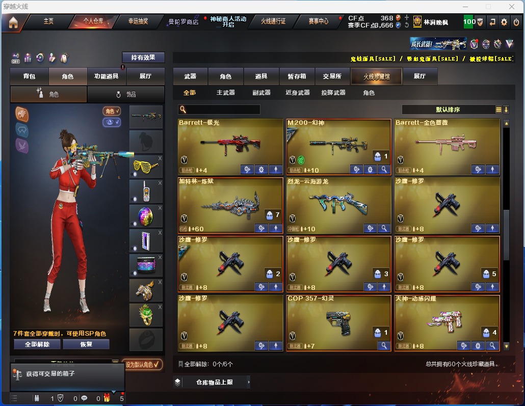 [11683537]2传说角色 1炫金武器 55V武器 可二次 可修改实名 优质装备:M200-幻神,QBZ03-金色蔷薇,AK47-火麒麟,AK47-机械迷城,M4A1-雷神,M4A1-黑骑士,M4A1-黑龙,M4A1-青龙,M4A1-龙血,M4A1-千变,Barrett-毁灭,Barrett-极光,AWM-天龙,加特林-炼狱,沙鹰-修罗,屠龙,龙啸,麒麟刺,M4A1-幻灵,幻灵之锋,龙啸-烈火龙威,烈火-动感闪耀,天神-动感闪耀,屠龙-动感闪耀,擎天-云海游龙,AK47-黑武士-锦绣游龙,烈龙-云海游龙,无影-神兵利器,COP 357-幻灵,龙啸-云海游龙 排位资格:有 V武器:AK47-黑鲨 王者武器:QBZ-03-王者蔷薇-觉醒版,王者之势-觉醒版,王者之烈-觉醒版 炫金武器:炫金毁灭 热门武器:牛牛-AK47,斯泰尔-枪娘暗刃