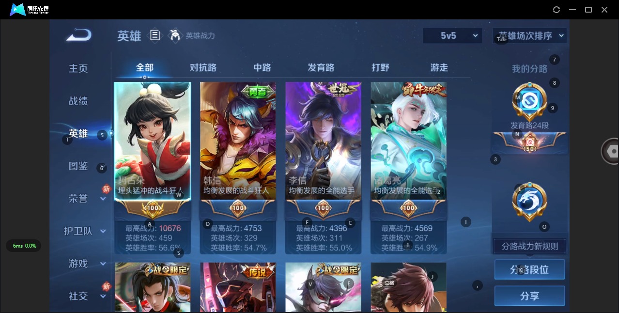 - PX_2095938-实名: 可修改 贵族等级: V8 英雄数: 123 皮肤数: 251 荣耀水晶: 无限飓风号 星传说: 幽冥火,幻舞叠翠 传说皮: 冠军飞将,猫影幻舞,久胜战神,地狱火,乞巧织情,游龙清影,淬星耀世,超时空战士-狄仁杰,山海·炽霜斩,山海·琳琅生,山海·苍雷引,炽翼辉光 限定皮: 遇见飞天,李小龙,祈雪灵祝,游园惊梦,梁祝,逐梦之光,凤求凰,寅虎·御盾,凤凰于飞,至尊宝,大圣