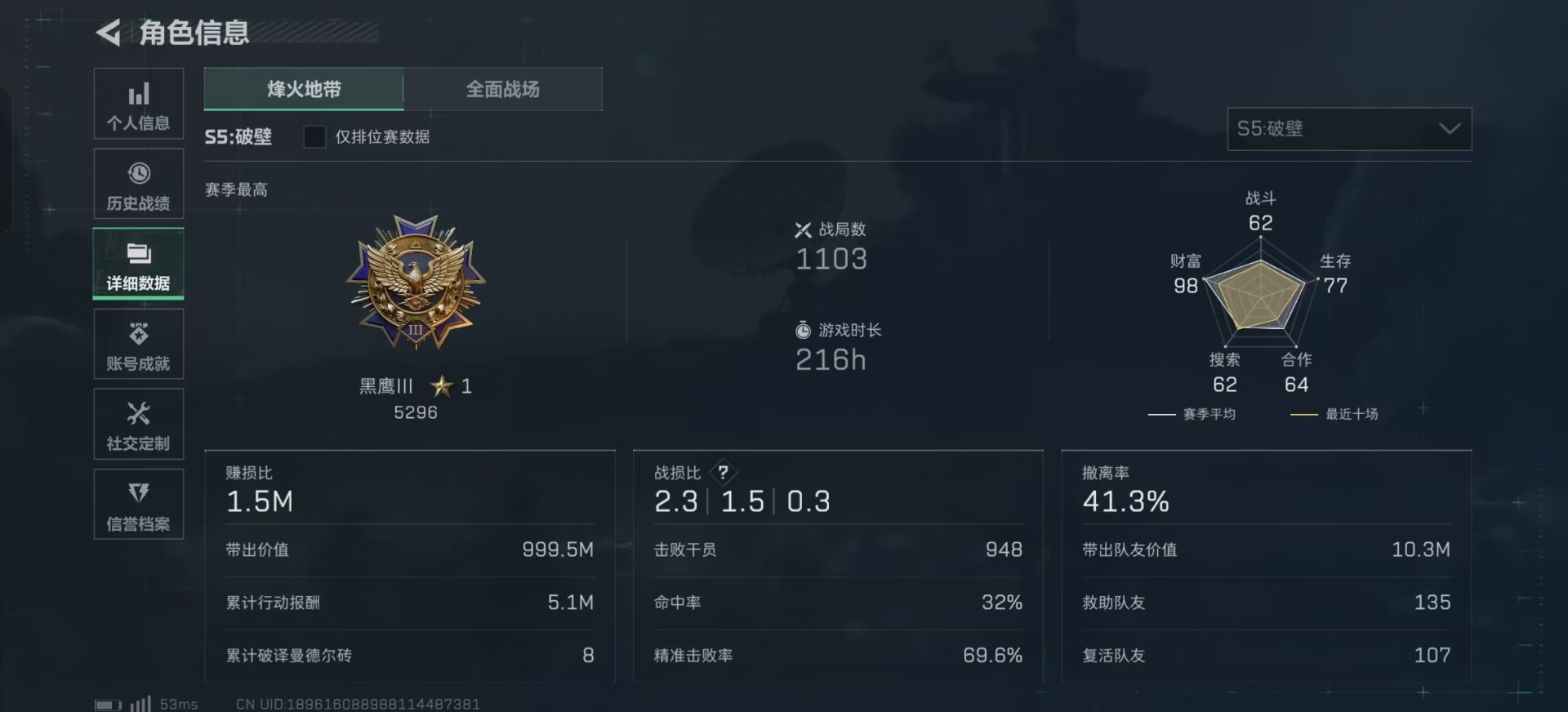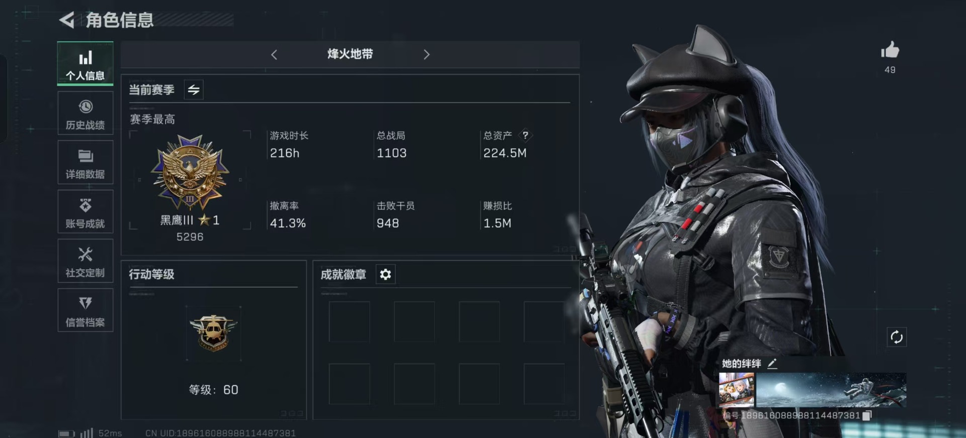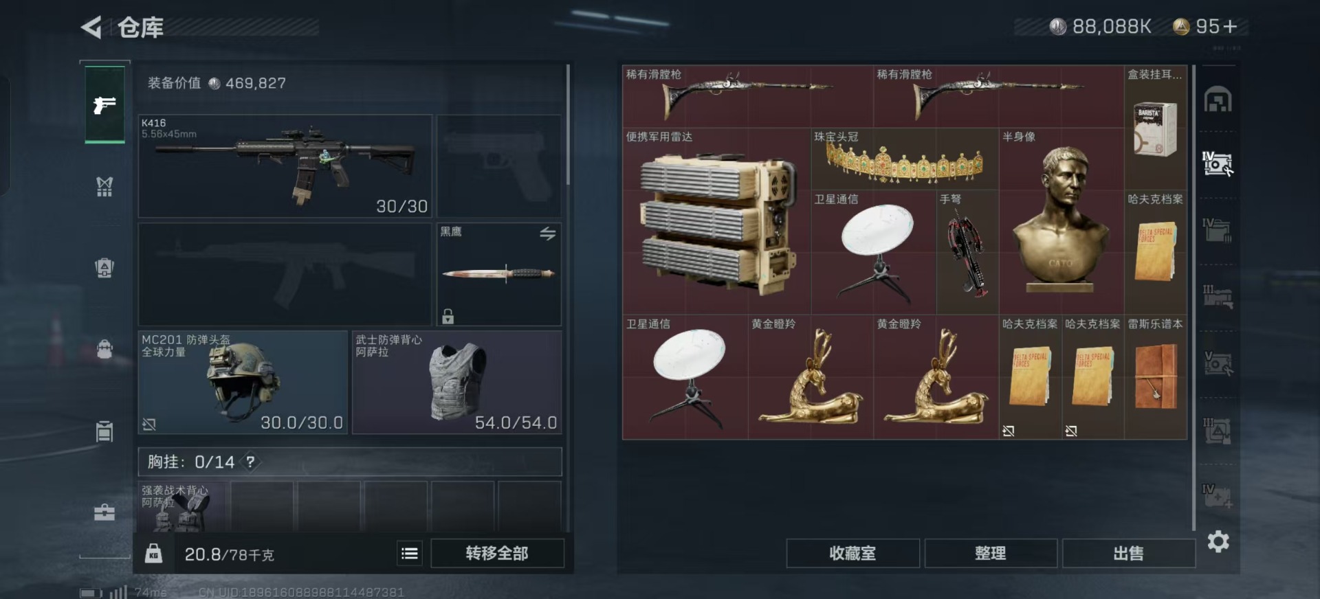 [11683777]总资产:224.5M 10传说枪械 哈夫币:88.088K 高级安全箱(9.15到期) 可二次 可修改实名 烽火地带段位:黑鹰 全面战场段位:无段位 传说武器皮肤:UZI冲锋枪-特斯拉线圈,AWM狙击步枪-捞点薯条,腾龙突击步枪-捞点薯条,93R-捞点薯条,AK-12突击步枪-特斯拉线圈,SR-3M紧凑突击步枪-特斯拉线圈,勇士冲锋枪-能天使-午夜邮差,复合弓-黑-天际线,725双管霰弹枪-送葬人-无题密令,M4A1突击步枪-阿米娅 史诗武器皮肤:PKM通用机枪-蝮蛇,QJB201轻机枪-Old Habits,勇士冲锋枪-深海恐惧,M16A4突击步枪-竞赛选手,SV-98狙击步枪-林中猎手,SV-98狙击步枪-囚徒,SVD狙击步枪-暗夜猎手,腾龙突击步枪-无垢,MP7冲锋枪-无垢,PSG-1射手步枪-无垢,SVD狙击步枪-荒野求生,SR-3M紧凑突击步枪-荒野求生,P90冲锋枪-紧急戒备