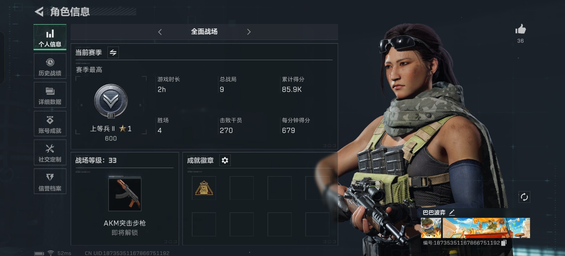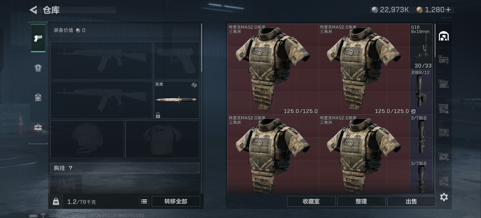 [11684010]总资产:151.8 0近战传说 4传说枪械 顶级安全箱(3×3)9.15号到期 段位:上等兵 可二次 可修改实名 烽火地带段位:钻石 全面战场段位:上等兵 哈夫币:22.973 传说武器皮肤:AK-12突击步枪-夜鹰,复合弓-黑-天际线,CAR-15突击步枪-阿米娅,725双管霰弹枪-送葬人-无题密令 史诗武器皮肤:PKM通用机枪-蝮蛇,SR-25射手步枪-尖端治疗,PKM通用机枪-荒野求生,AS Val突击步枪-尖端治疗,Ash-12战斗步枪-守夜人,SR-3M紧凑突击步枪-荒野求生,勇士冲锋枪-深海恐惧,AKM突击步枪-林中猎手,M16A4突击步枪-竞赛选手,PKM通用机枪-守夜人,SVD狙击步枪-荒野求生,SV-98狙击步枪-林中猎手,PTR-32突击步枪-英雄,PSG-1射手步枪-无垢,腾龙突击步枪-无垢,MP7冲锋枪-无垢,沙漠之鹰-曙光,SVD狙击步枪-阿萨拉工艺,M700狙击步枪-竞技风