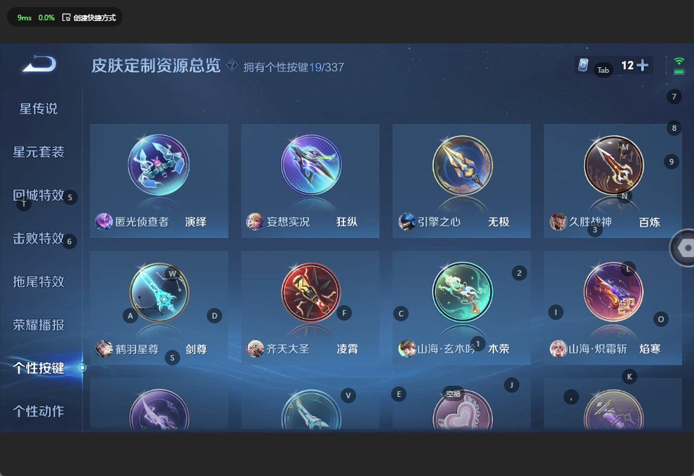 金蝉唐三藏,黄忠烈魂,伽罗天狼溯光者,苏烈玄武志,鲁班七号乒乒小将,鲁班七号寅虎·瑞焰,后羿无尽星芒,诸葛亮时雨天司,裴擒虎李小龙,花木兰瑞麟志,马可波罗山海·玄木吟,孙悟空孙行者,孙悟空大圣娶亲,孙悟空美猴王,赵云引擎之心,百里守约朱雀志