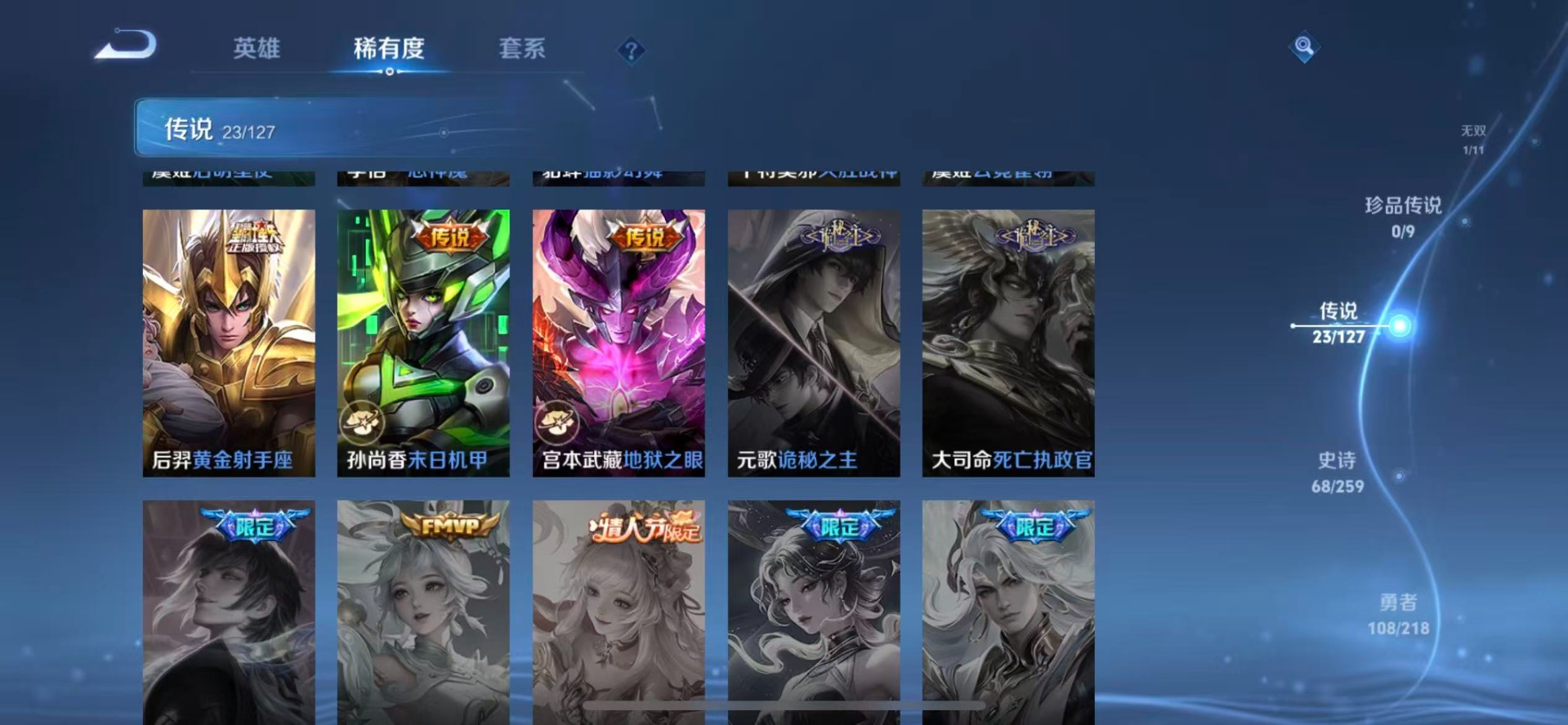 - [11603347]V7 1典藏 11传说 125英雄 225皮肤 可修改实名 优质装备:幻阙歌(貂蝉典藏),黄金射手座,云鹰飞将(小将军),仲夏夜之梦(大飞蛾),游龙清影(小青龙),超时空战士-狄仁杰,山海·炽霜斩(李信年限),炽翼辉光(娃娃菜牛角包) 传说皮:幻光神枪 珍宝阁皮:胡桃夹子,女武神,玩趣恶龙 限定皮:愿照·九州拓(澜年限),鸣野蒿,遇见飞天,诗剑行,五谷丰年,李小龙,朱雀志(守约年限),匿光追影者,山海·玄木吟(马可年限) 史诗皮:星界战将,百相守梦-黄忠,紫霞仙子,苍穹之光,电玩小子(小书包),白龙吟,黄金分割率,特工魅影,千年之狐,江河有灵,蒙恬荣光圣徽,冰冠公主,偶像歌手,电玩·爆裂旋风,末日机甲-吕布,猫狗日记-孙策,猫狗日记-大乔,乱世虎臣,节奏热浪,女仆咖啡,摇滚巨星,水果甜心,星夜王子,功夫厨神,德古拉伯爵,暗隐猎兽者,鬼剑武藏,心灵战警,舞动绿茵,纤云弄巧,缤纷独角兽,乘风破浪,逐浪之夏,水晶猎龙者,曙光守护者,箭羽风息,金属风暴,原初追逐者,圣诞狂欢,圣诞恋歌,鹰眼统帅,王者之锤,暗夜贵公子,魅力维加斯,黎明之约,无心,未来纪元-赵云