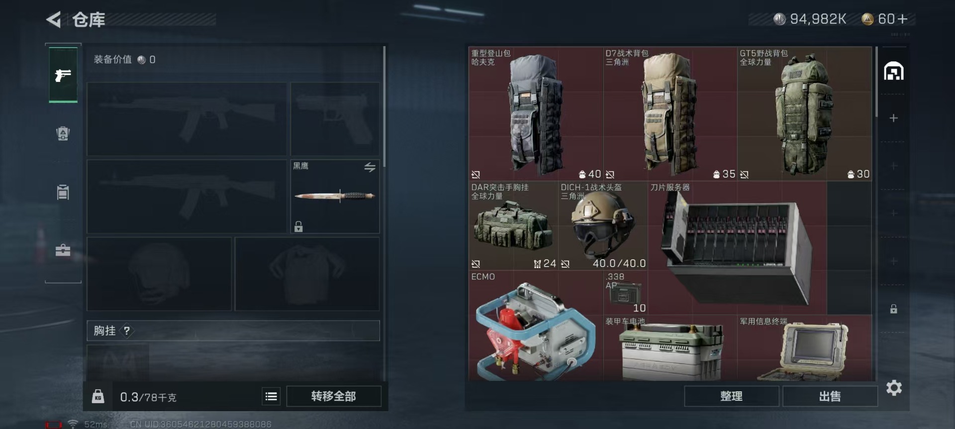 [11684315]总资产:111M 哈夫币:94.982K 可二次 可修改实名 烽火地带段位:铂金 全面战场段位:无段位