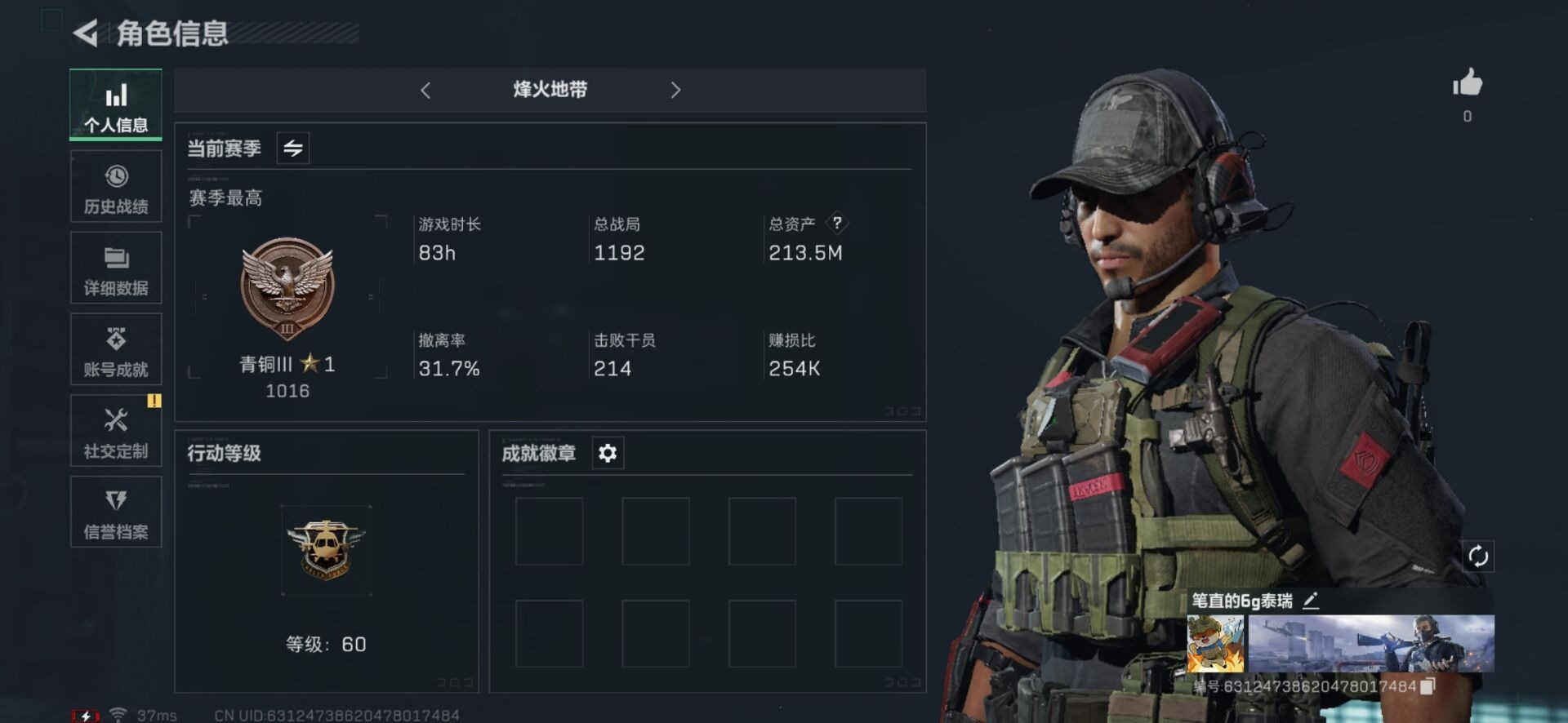 [11684335]总资产:213.5 5传说枪械 高级安全箱(9.17到期) 可二次 可修改实名 烽火地带段位:青铜 全面战场段位:无段位 哈夫币:160 传说武器皮肤:SR-3M紧凑突击步枪-特斯拉线圈,AK-12突击步枪-特斯拉线圈,CAR-15突击步枪-阿米娅,725双管霰弹枪-送葬人-无题密令,UZI冲锋枪-特斯拉线圈 史诗武器皮肤:PKM通用机枪-荒野求生,SR-3M紧凑突击步枪-荒野求生,SVD狙击步枪-荒野求生,SV-98狙击步枪-林中猎手,PSG-1射手步枪-无垢,AS Val突击步枪-典狱官,M250通用机枪-囚徒,腾龙突击步枪-无垢,MP7冲锋枪-无垢