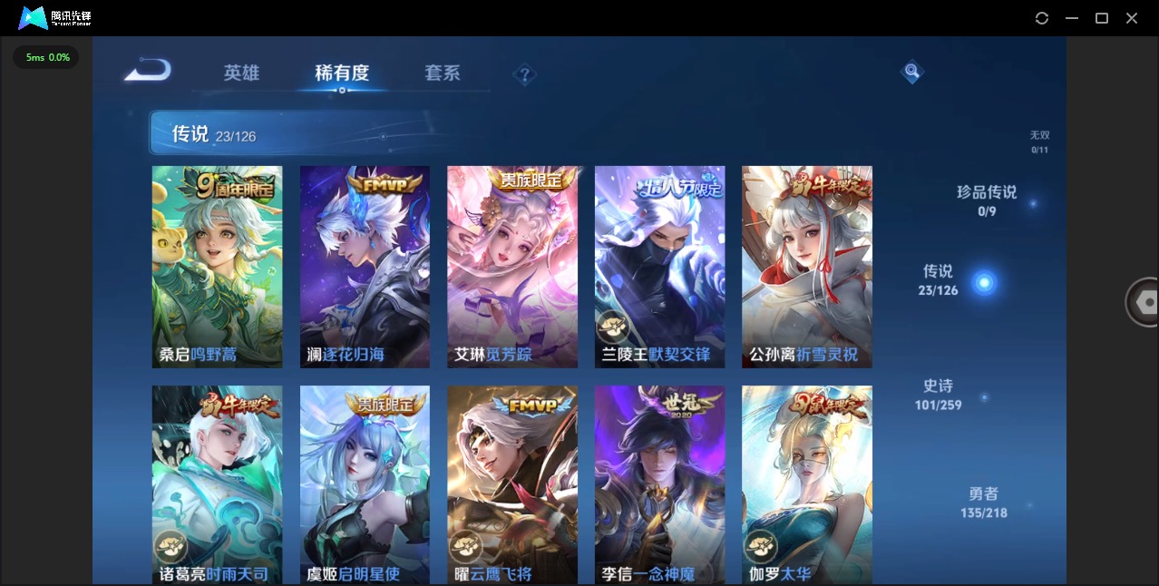 - [11681294]V6 3传说 112英雄 93皮肤 可修改实名 优质装备:地狱火 限定皮:逐霄战戟,鸣野蒿,逐梦之翼,逐梦之星,李小龙,永曜之星,辉光之辰,青春决赛季 史诗皮:飞车小橘子,破空之剑,特工魅影,千年之狐,江河有灵,末日机甲-吕布,猫狗日记-孙策,乱世虎臣,摇滚巨星,水果甜心,星夜王子,德古拉伯爵,幽灵船长,鬼剑武藏,拒霜思,逐浪之夏,曙光守护者,鹰眼统帅