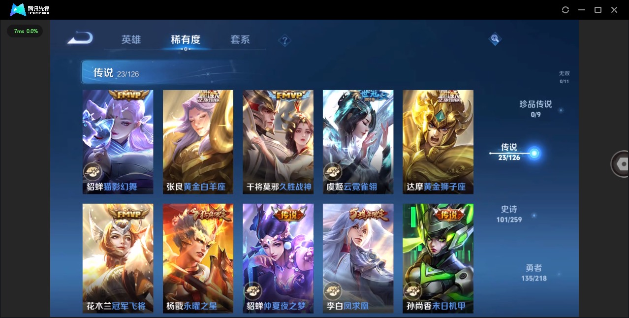 - [11884332]V7 1珍品传说 12传说 124英雄 136皮肤 可修改实名 优质装备:云鹰飞将(小将军),绛天战甲(鸡嘴战神),海洋之心,音你心动-周瑜,游龙清影(小青龙),浮生妄,鲁班七号-时之奇旅,澜逐花归海,玄雷天君 珍品传说:时之奇旅-孙策 传说皮:幻光神枪 珍宝阁皮:蔷薇恋人 限定皮:鸣野蒿,飞衡(韩信年限),怒海麟威,五谷丰年 史诗皮:茶境仙,百相守梦-百里守约,星界特工,百相守梦-黄忠,紫霞仙子,特工魅影,魅语,高渐离燃音魔法,龙骑士(小龙虾),末日机甲-吕布,猫狗日记-孙策,节奏热浪,修罗,女仆咖啡,水果甜心,星夜王子,功夫厨神,德古拉伯爵,幽灵船长,鬼剑武藏,心灵战警,地狱岩魂,纤云弄巧,缤纷独角兽,乘风破浪,逐浪之夏,曙光守护者,金属风暴,圣诞狂欢,圣诞恋歌,鹰眼统帅,魅力维加斯,无心,未来纪元-赵云