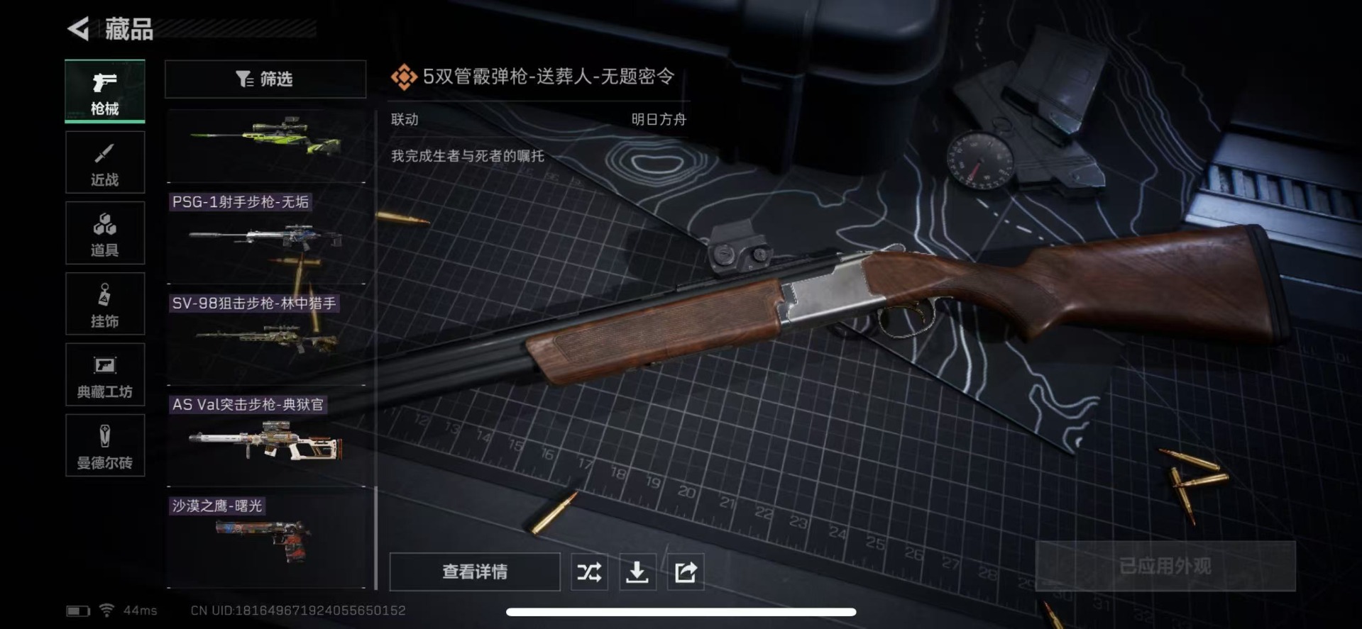 [11684508]总资产:126.1M 1干员外观 1近战传说 11传说枪械 哈夫币:56.046K 高级安全箱(2×3)9.15号到期 可二次 可修改实名 优质装备:近战-北极星 烽火地带段位:钻石 全面战场段位:统帅 传说武器皮肤:M4A1突击步枪-阿米娅,CAR-15突击步枪-阿米娅,复合弓-黑-天际线,QCQ171冲锋枪-北极星,AK-12突击步枪-特斯拉线圈,SR-3M紧凑突击步枪-特斯拉线圈,UZI冲锋枪-特斯拉线圈,勇士冲锋枪-能天使-午夜邮差,725双管霰弹枪-送葬人-无题密令,K437突击步枪-北极星 史诗武器皮肤:M700狙击步枪-蝮蛇,M16A4突击步枪-竞赛选手,PKM通用机枪-荒野求生,SG552突击步枪-深海恐惧,SR-3M紧凑突击步枪-荒野求生,SV-98狙击步枪-林中猎手,SVD狙击步枪-荒野求生,AS Val突击步枪-典狱官,SCAR-H战斗步枪-囚徒,腾龙突击步枪-无垢,MP7冲锋枪-无垢,PSG-1射手步枪-无垢,沙漠之鹰-曙光 干员外观:露娜-黑·天际线