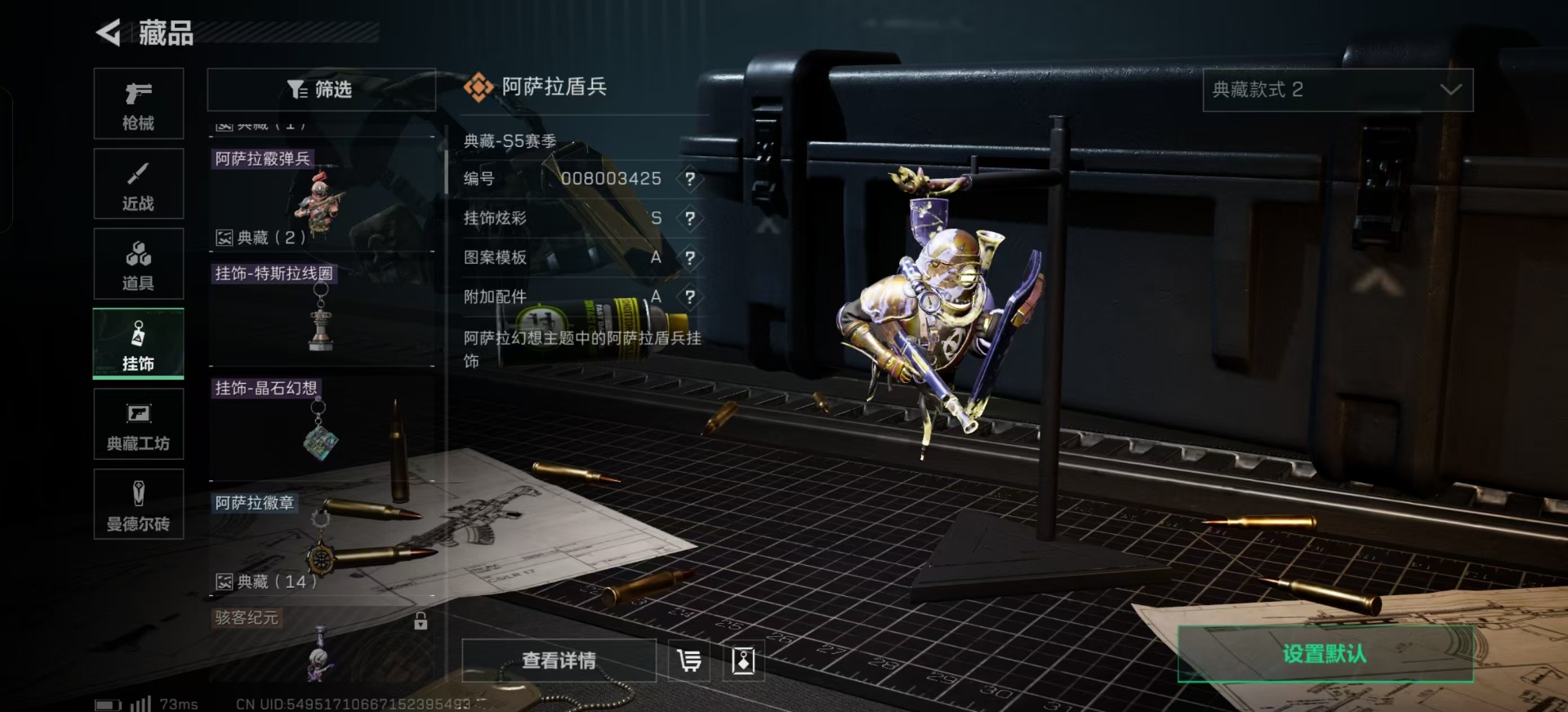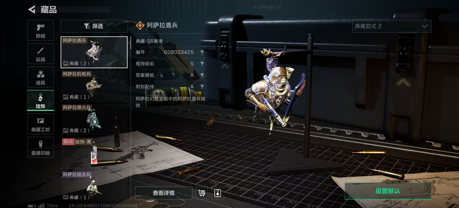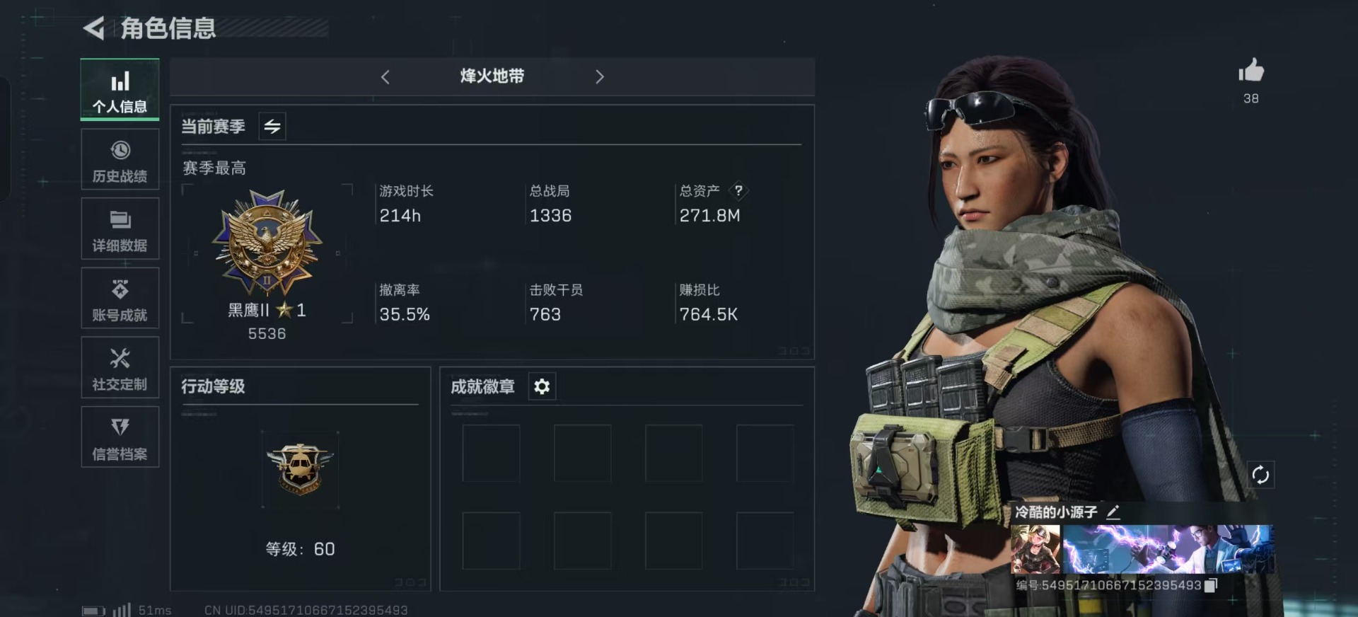 - [11445682]总资产:40.5 2干员外观 1近战传说 15传说枪械 段位:无段位 可二次 可修改实名 烽火地带段位:黑鹰 全面战场段位:无段位 哈夫币:356 传说武器皮肤:近战-怜悯,AS Val突击步枪-蛇年祥瑞,SCAR-H战斗步枪-水墨云图,SR-25射手步枪-水墨云图,AK-12突击步枪-夜鹰,SMG45冲锋枪-骑士,AKM突击步枪-秘银工艺,M250通用机枪-游乐场,M7战斗步枪-维京,M7战斗步枪-怜悯,ASh-12战斗步枪-怜悯,SG552突击步枪-白鹰军团,M4A1突击步枪-蚀金玫瑰,P90冲锋枪-神秘艺术,QBZ95-1突击步枪-破军 干员外观:红狼-蚀金玫瑰,骇爪-水墨云图