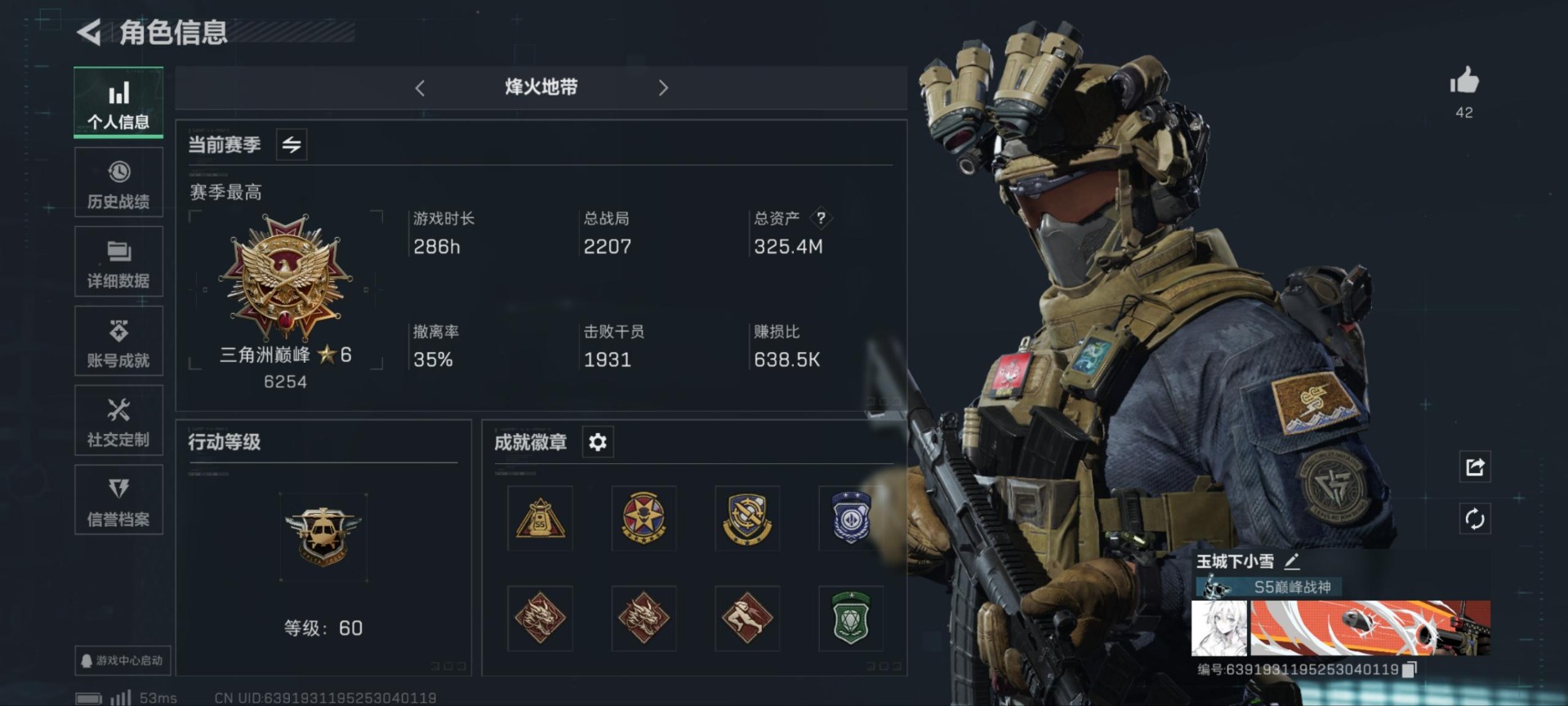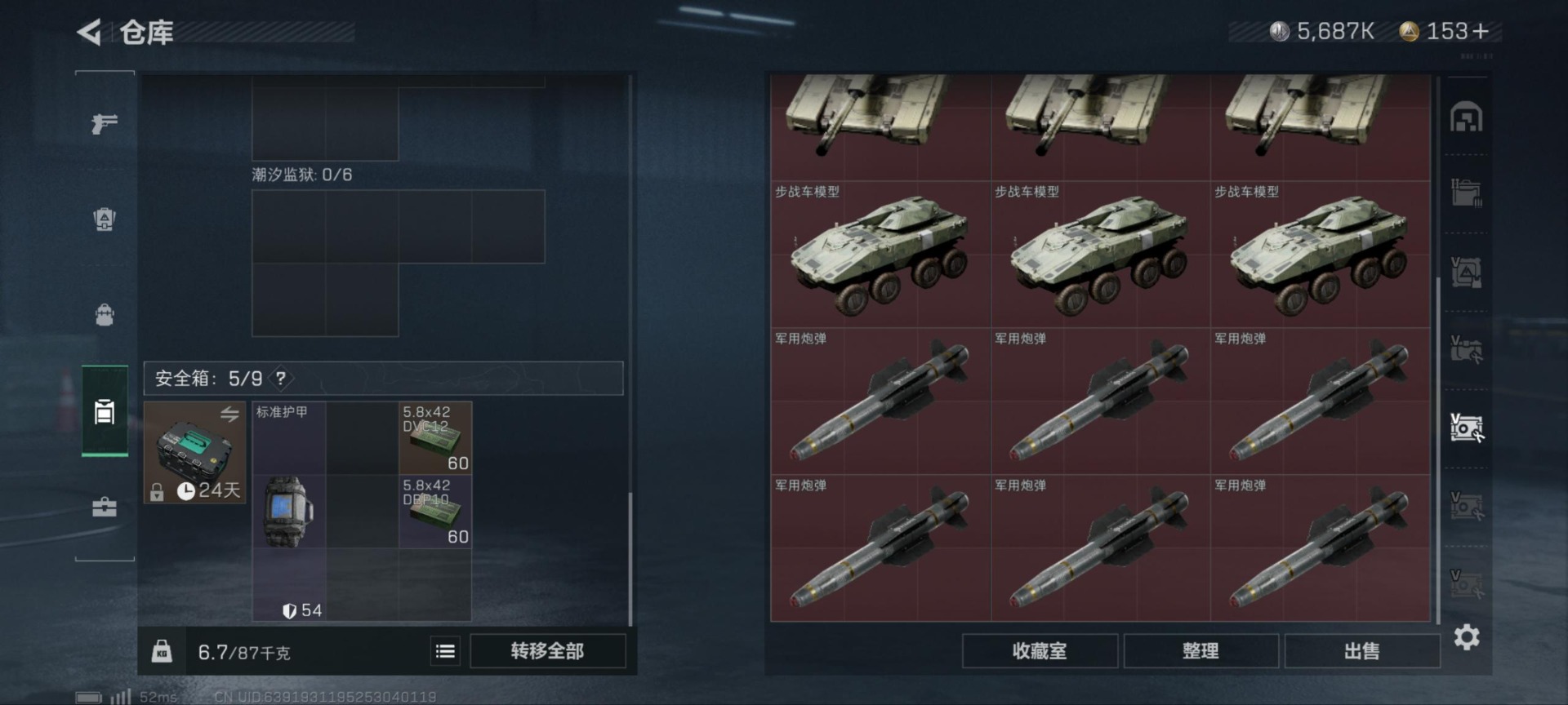 [11684548]总资产:325.4M 1干员外观 10传说枪械 哈夫币:5.687K 顶级安全箱(3×3)9.15号到期 可二次 可修改实名 优质装备:顶级安全箱(3x3) 烽火地带段位:三角洲巅峰 全面战场段位:列兵 传说武器皮肤:M4A1突击步枪-阿米娅,CAR-15突击步枪-阿米娅,复合弓-黑-天际线,AWM狙击步枪-捞点薯条,腾龙突击步枪-捞点薯条,93R-捞点薯条,AK-12突击步枪-特斯拉线圈,SR-3M紧凑突击步枪-特斯拉线圈,UZI冲锋枪-特斯拉线圈,勇士冲锋枪-能天使-午夜邮差 史诗武器皮肤:M16A4突击步枪-竞赛选手,SG552突击步枪-深海恐惧,AKM突击步枪-林中猎手,M1014霰弹枪-林中猎手,SV-98狙击步枪-林中猎手,PTR-32突击步枪-英雄,M250通用机枪-囚徒,SCAR-H战斗步枪-囚徒,Vector冲锋枪-阿萨拉文明 干员外观:露娜-黑·天际线
