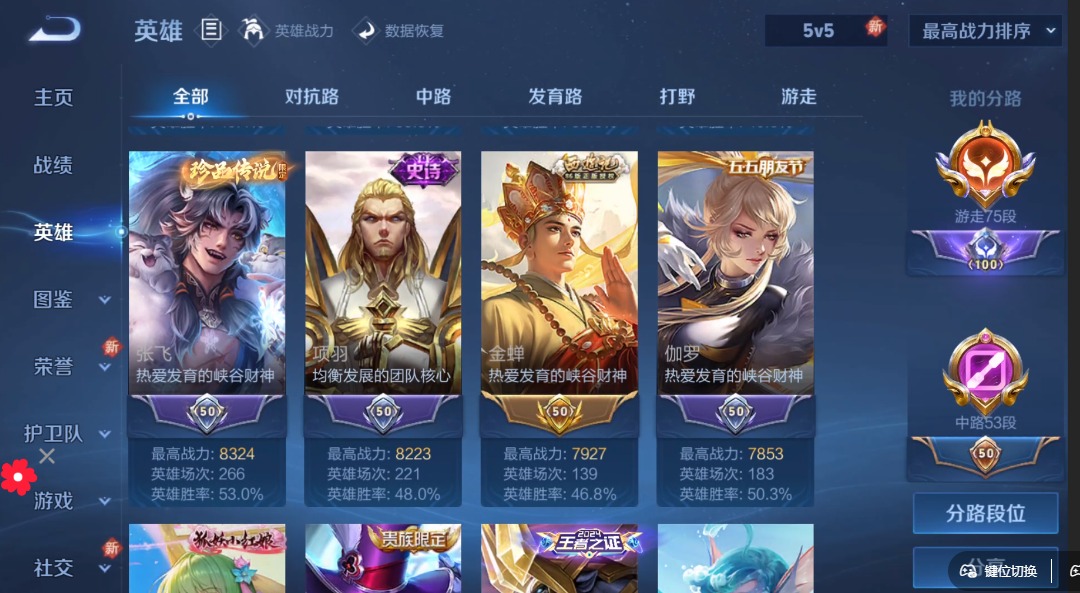 - [12031827]V7 3传说 123英雄 226皮肤 可修改实名 优质装备:云霓雀翎 珍宝阁皮:优雅恋人,蔷薇恋人 限定皮:愿照·岁时盈(虞姬年限),愿照·众生和(妲己年限),至尊宝,傲雪梅枪,遇见飞天,高山流水,五谷丰年,岱宗(典韦年限),逐梦之音,李小龙,猪悟能 史诗皮:鸭鸭历险记-刘禅,化蝶舞,龙之律动,石田雨龙,茶境仙,怒海争锋,遇见神鹿,白龙吟,特工魅影,江河有灵,高渐离燃音魔法,偶像歌手,龙骑士(小龙虾),末日机甲-吕布,猫狗日记-孙策,猫狗日记-大乔,女仆咖啡,水果甜心,绅士熊喵,心灵骇客,功夫厨神,鬼剑武藏,纤云弄巧,繁星吟游(呼啦呼啦),拒霜思,缤纷独角兽,逐浪之夏,曙光守护者,唤灵魅影,原初追逐者,圣诞狂欢,圣诞恋歌,鹰眼统帅,魅力维加斯,黎明之约,未来纪元-赵云