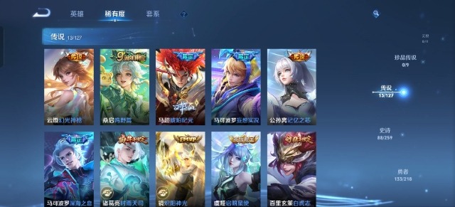刘邦夺宝奇兵,夏侯惇朔风刀,老夫子醍醐杖,沈梦溪星空之诺,沈梦溪大漠名商,盾山御銮,曹操烛龙,苏烈千军破阵,典韦穷奇,典韦蓝屏警告,达摩沙漠行僧,牛魔御旌,元歌云间偶戏,裴擒虎擒涛扼浪,鲁班大师探海日志,明世隐疑决卦,蒙犽狂想玩偶喵,马可波罗暗影游猎,白起狰,鬼谷子原初探秘者,张良古海寻踪,女娲朔望之晖,桑启海盐诗旅,狄仁杰万华元夜,芈月重明,程咬金演武夺筹,李元芳银河之约,李元芳云中旅人,弈星混沌棋,米莱狄御霄,钟馗驱傩正仪,狂铁御狮,太乙真人饕餮