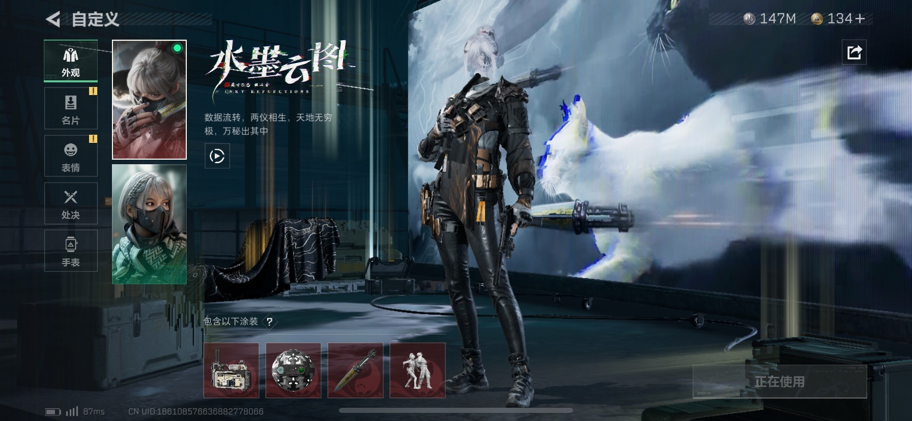 - [9770167]实名: 可修改 时装数: 414 载具数: 1 枪械数: 189 战备数: 127 热门装扮: 碧穹智者,银红美神,暗夜鎏金,心之回忆,绿野极光,圣堂之誓,绝色倾城,智耀战神 载具: 玛莎拉蒂Quattroporte(夜幕蓝) 稀有枪皮: AKM星际浪客,SCAR-L纯梦嫁纱,Kar98K未来歌姬,P90能量风暴,DP-28-千金淑猫,Kar98K-巳巳如意,AUG-圣斗士星矢