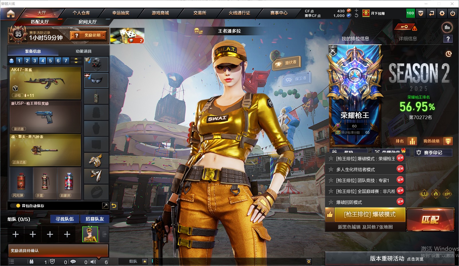 [11685311]1传说角色 3王者武器 2炫金武器 34V武器 可二次 可修改实名 优质装备:M200-幻神,QBZ03-金色蔷薇,AK47-火麒麟,AK47-机械迷城,M4A1-雷神,M4A1-黑骑士,M4A1-死神,M4A1-黑龙,M4A1-青龙,Barrett-毁灭,AA-12-雷霆,AK12-天启,HK417-朱雀,9A91-烈火,擎天,炽芒蝶刃,龙啸-烈火龙威,AK47-黑武士-锦绣游龙,无影-神兵利器,机械迷城-穹宇 排位资格:有 V武器:AK47-黑鲨 王者武器:王者之武-觉醒版,王者之翼-觉醒版,王者之魄-觉醒版,王者冰魄 炫金武器:炫金黑骑士