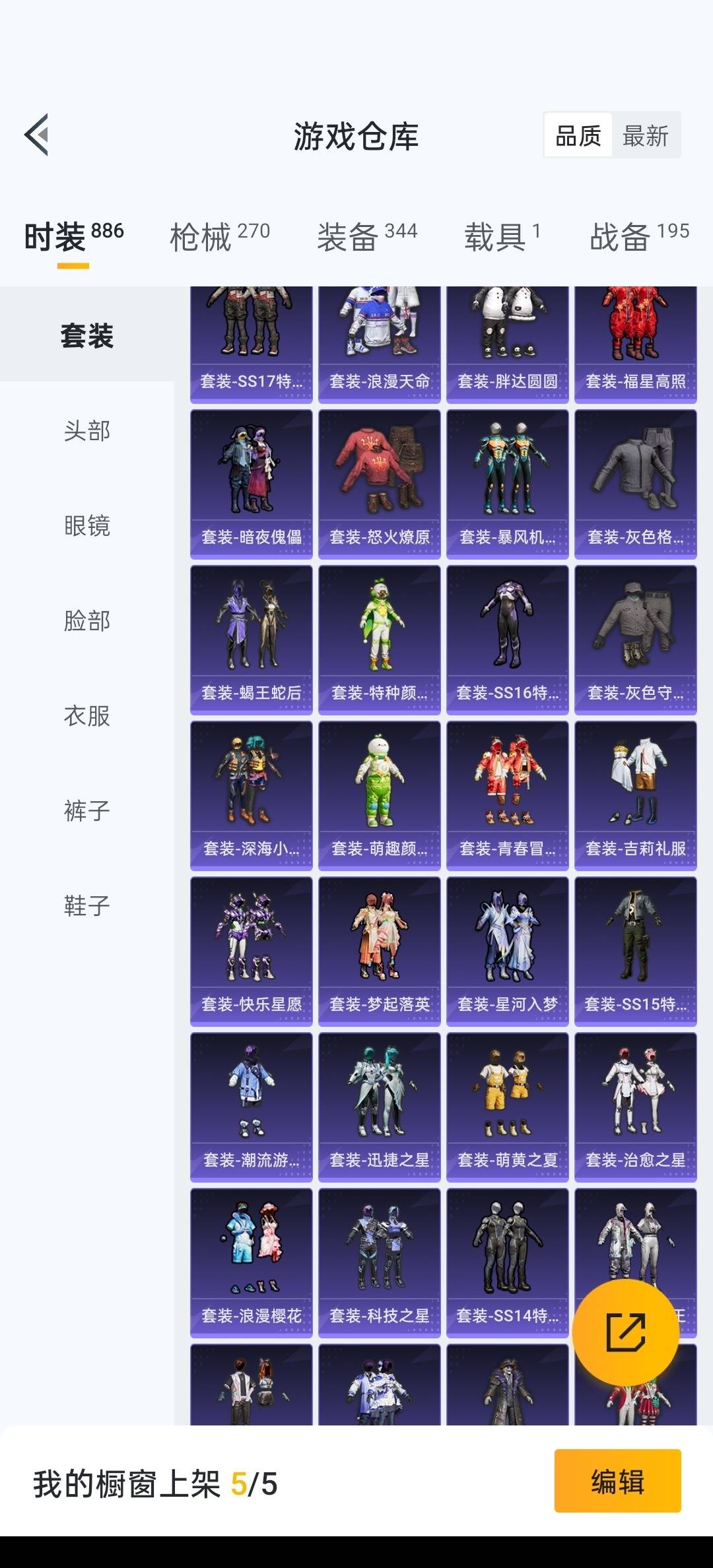 套装-鹰眼刺客,套装-深海小丑鱼,套装-胖达圆圆,套装-梦魇先生,套装-宝贝奶油派,套装-浪漫波比,奇迹天团套装,套装-华贵君王,套装-潮萌小黄鸭,套装-软萌银虎,套装-PEL轰鸣竞梦者,套装-缤纷油彩,套装-新星烈龙,套装-极致幻想,套装-锦绣火鲤,套装-星之彼岸,套装-蓝莓炮弹,套装-霁雪冰心,套装-冰川幽秘,套装-第五大道