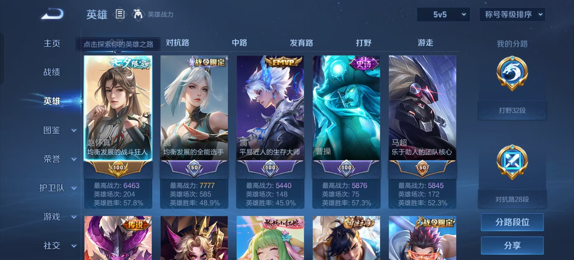 - PX_2102721-贵族等级: V5 英雄数: 94 皮肤数: 50 传说皮: 霜月吟,澜逐花归海