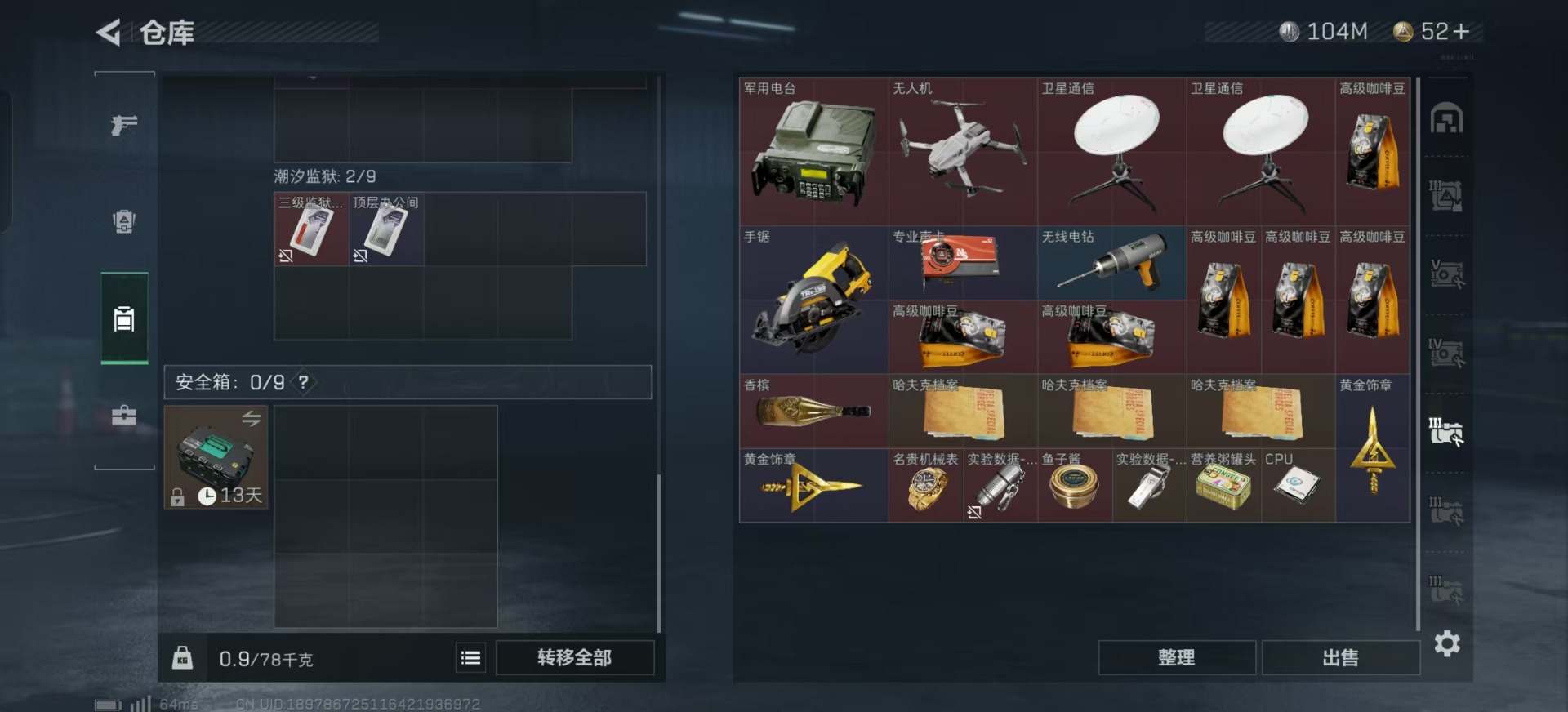 [11685978]总资产:200M 10传说枪械 哈夫币:104K 可二次 可修改实名 优质装备:顶级安全箱(3x3) 烽火地带段位:铂金 全面战场段位:军士长 传说武器皮肤:UZI冲锋枪-特斯拉线圈,AWM狙击步枪-捞点薯条,腾龙突击步枪-捞点薯条,93R-捞点薯条,AK-12突击步枪-特斯拉线圈,SR-3M紧凑突击步枪-特斯拉线圈,勇士冲锋枪-能天使-午夜邮差,复合弓-黑-天际线,725双管霰弹枪-送葬人-无题密令,CAR-15突击步枪-阿米娅 史诗武器皮肤:M700狙击步枪-蝮蛇,M16A4突击步枪-竞赛选手,SV-98狙击步枪-林中猎手,PKM通用机枪-荒野求生,M250通用机枪-囚徒,SV-98狙击步枪-囚徒,SCAR-H战斗步枪-囚徒,腾龙突击步枪-无垢,MP7冲锋枪-无垢,PSG-1射手步枪-无垢,SVD狙击步枪-荒野求生,SR-3M紧凑突击步枪-荒野求生,沙漠之鹰-曙光,Vector冲锋枪-阿萨拉文明,S12K霰弹枪-曙光,M700狙击步枪-竞技风